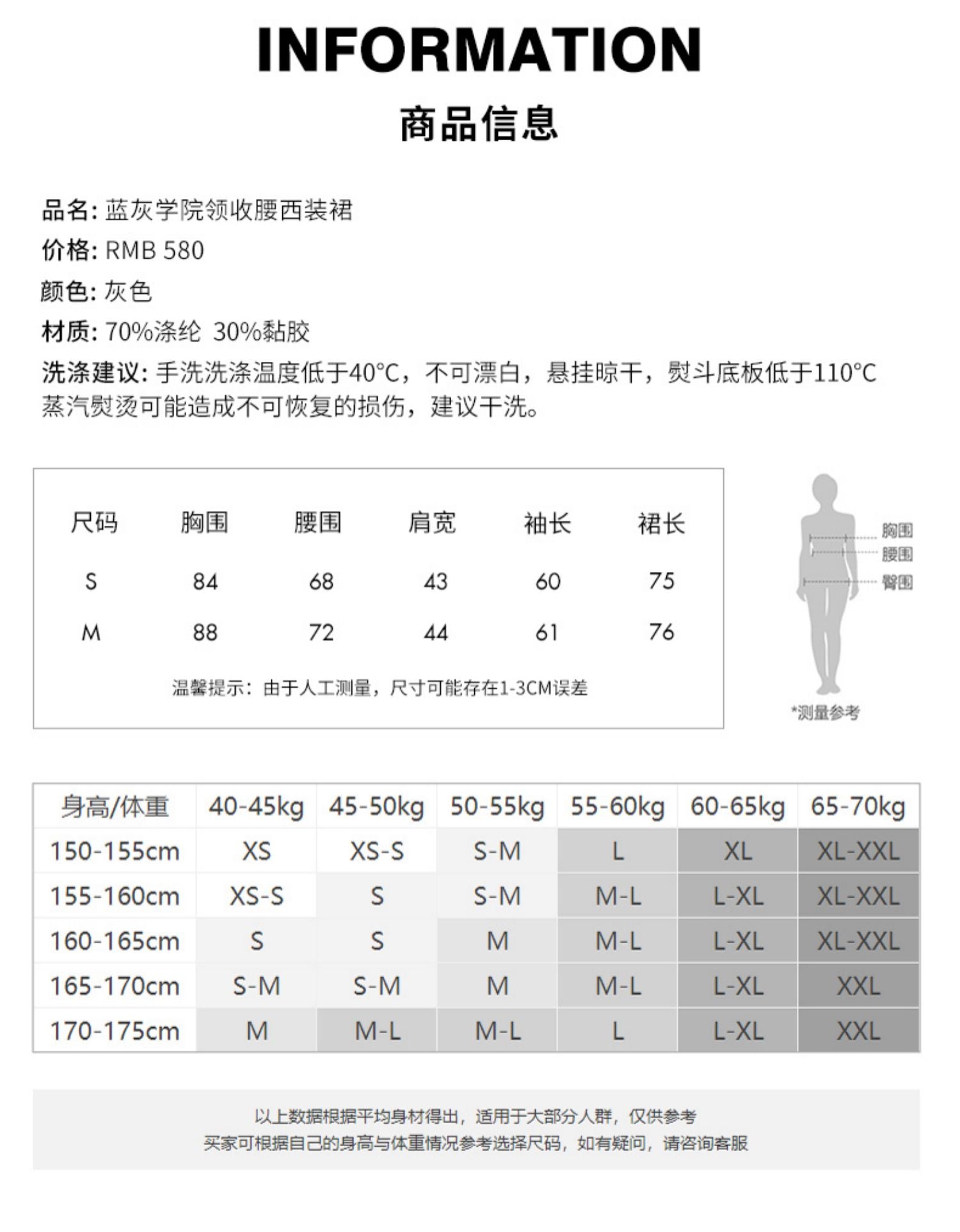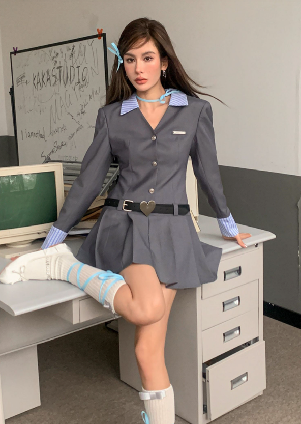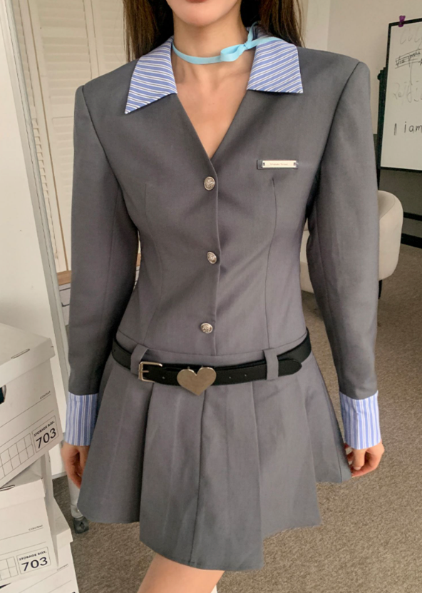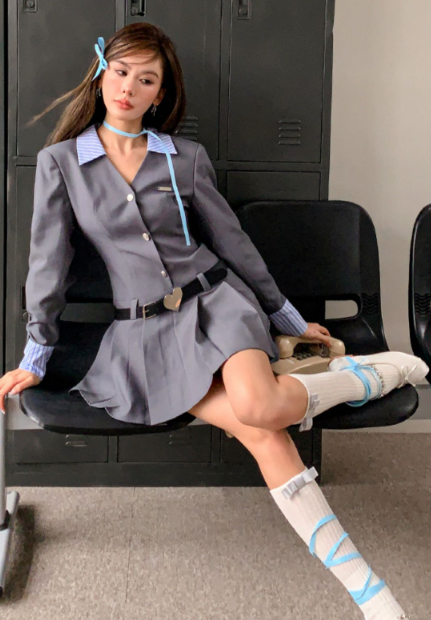 WILDSHADOW SS2303 蓝灰学院西装裙