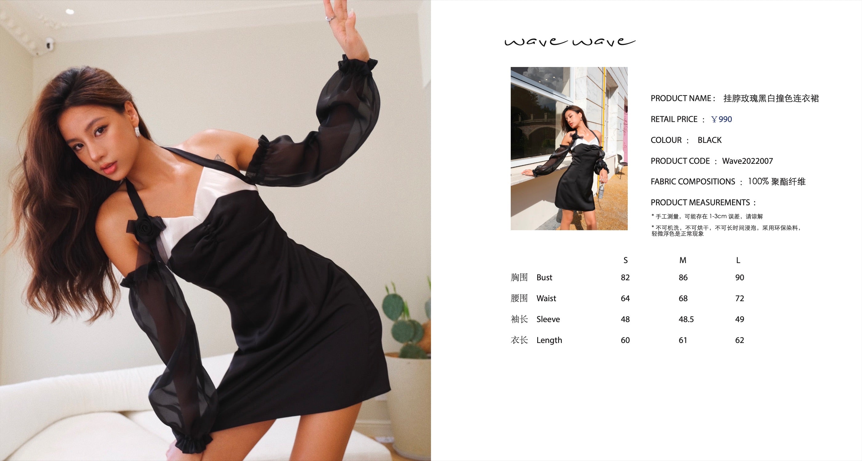 WILDSHADOW SS2401 挂脖玫瑰黑白撞色连衣裙