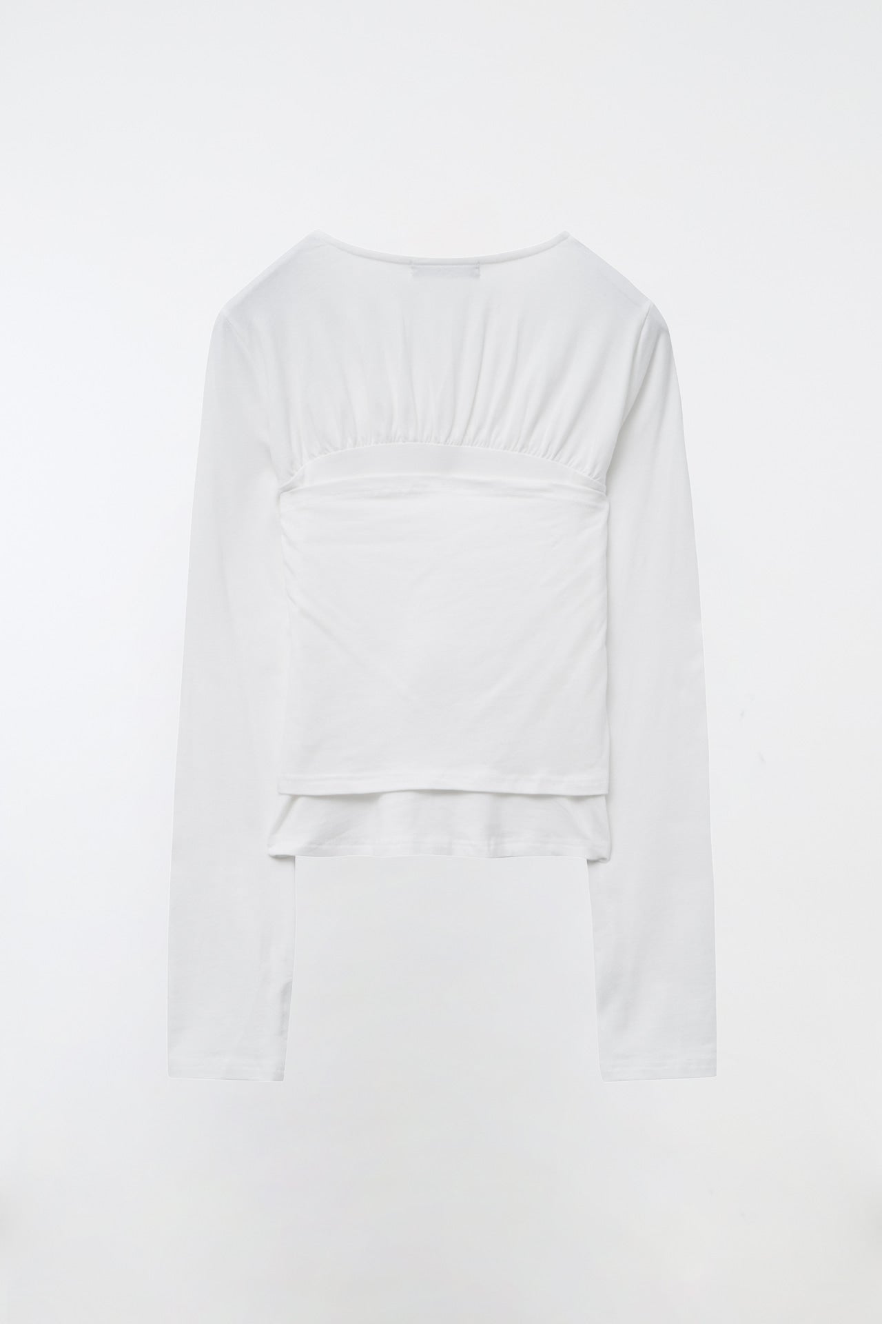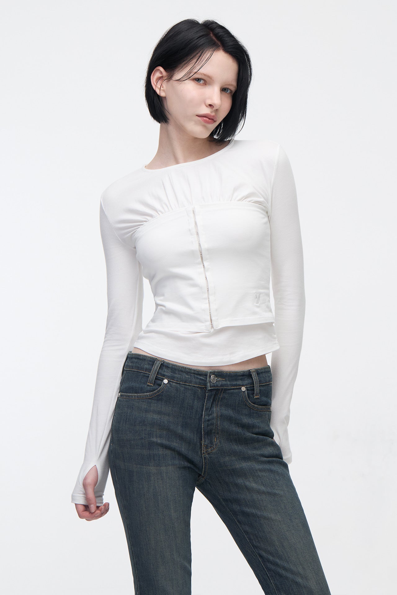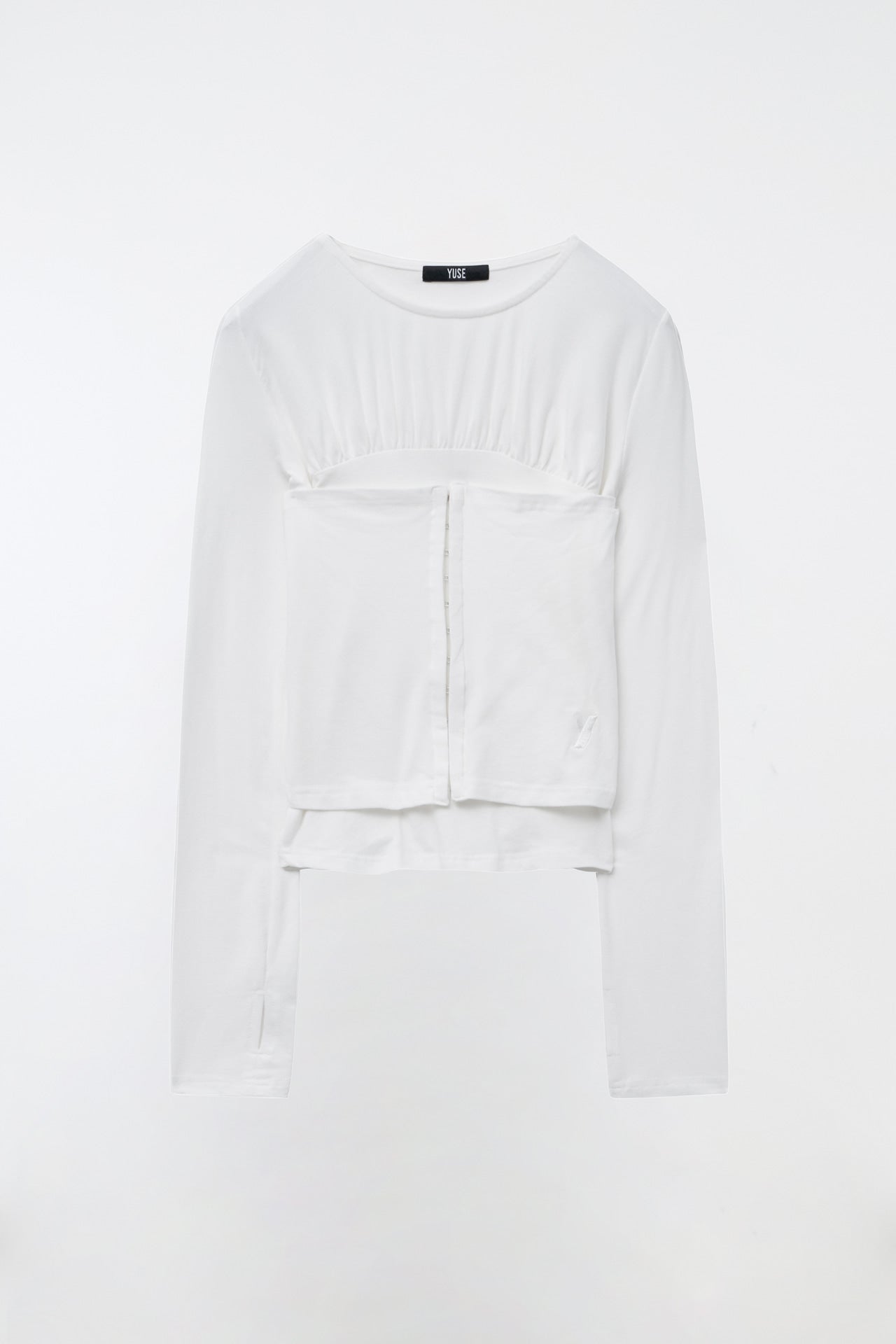 YUSE 2410 HOOK CLOSING TUBE TOP LONG SLEEVE T-SHIRT - IVORY