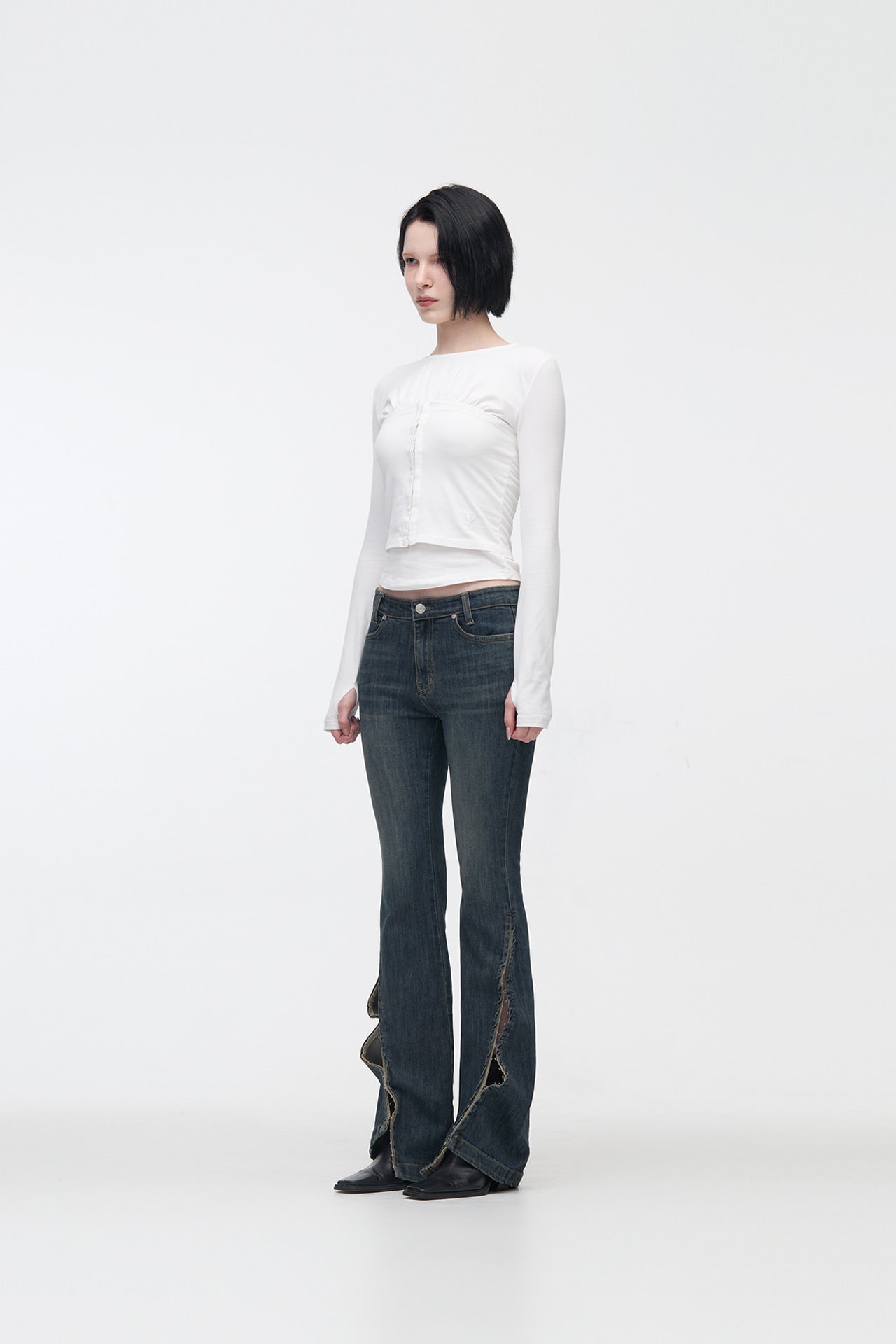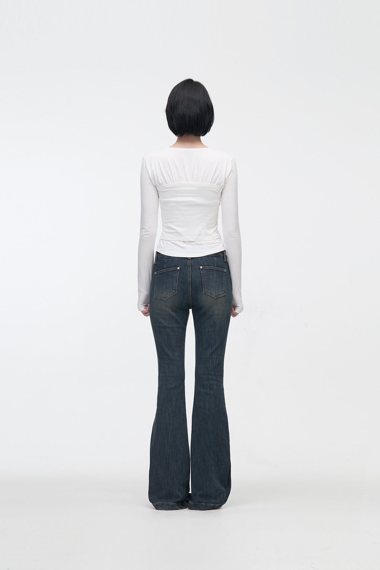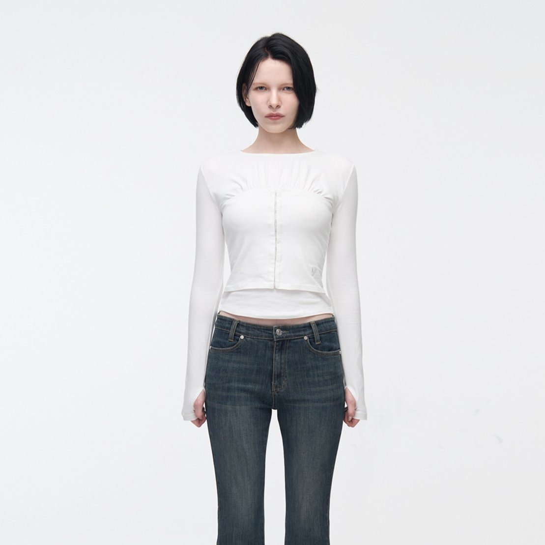 YUSE 2410 HOOK CLOSING TUBE TOP LONG SLEEVE T-SHIRT - IVORY