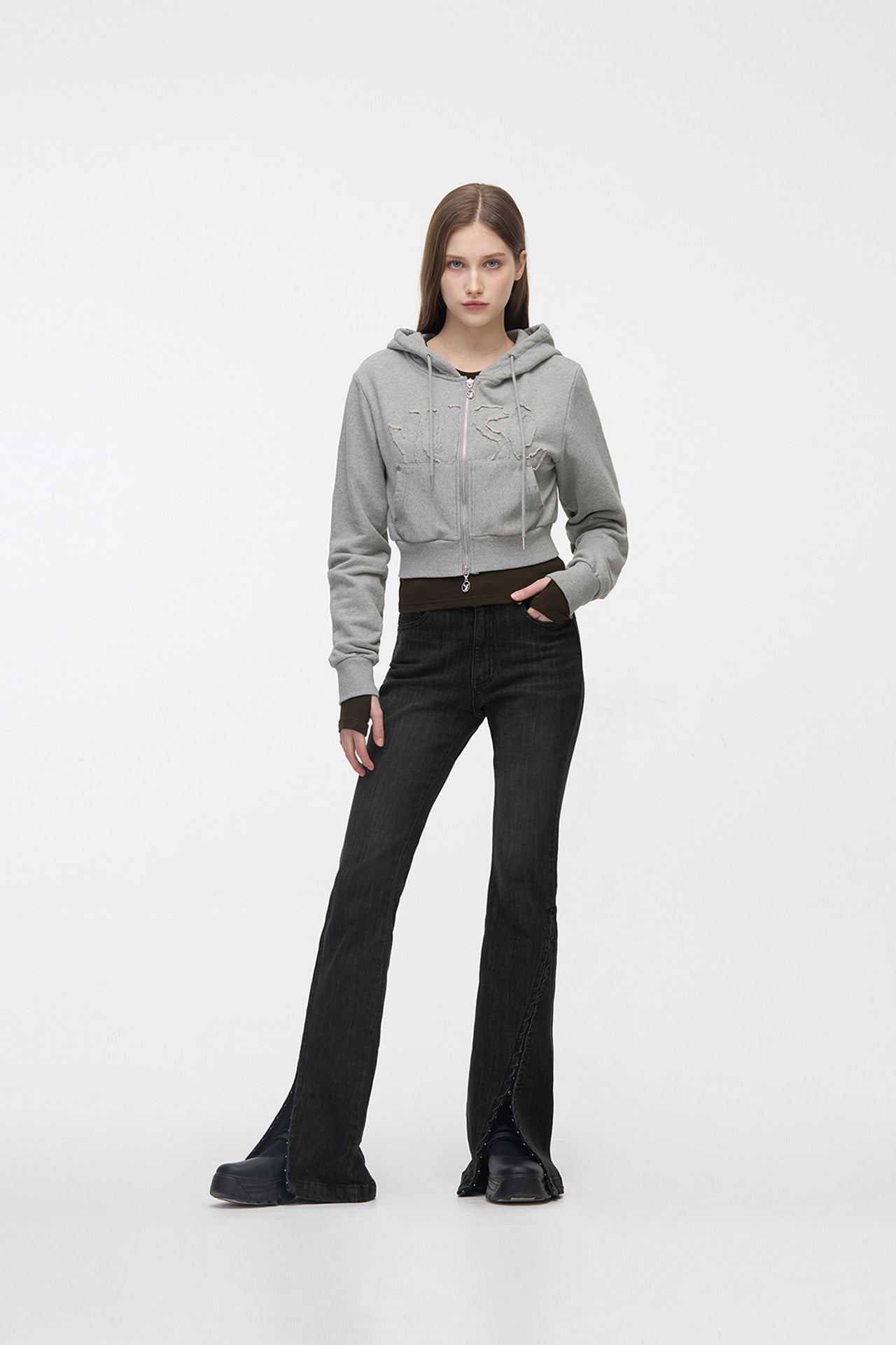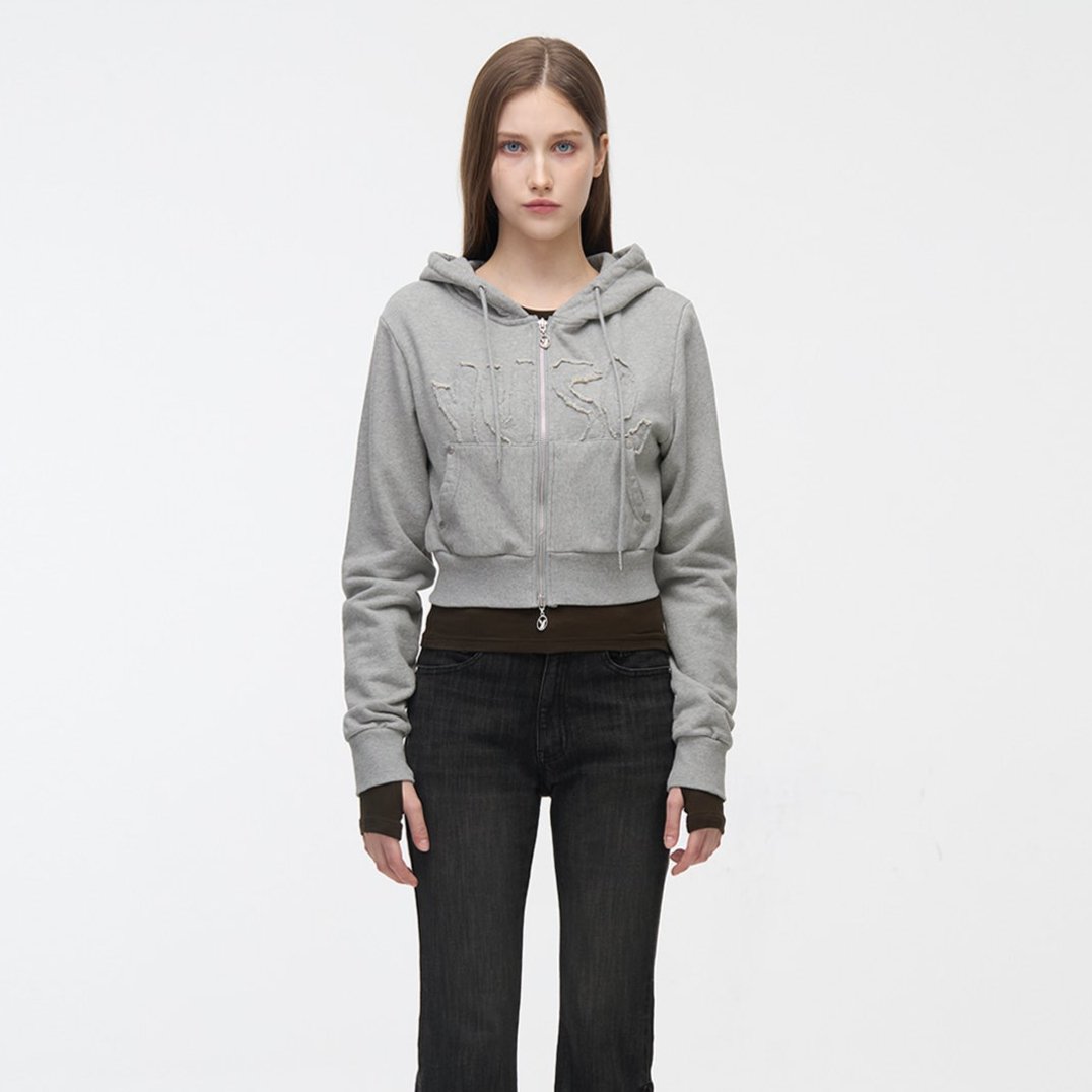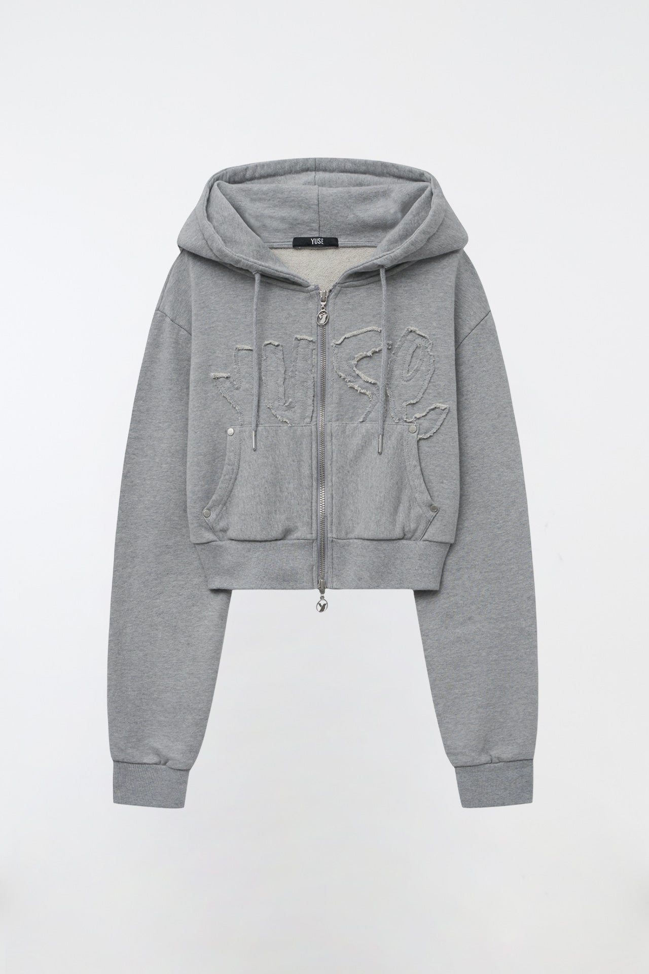 YUSE 2410 LOGO PATCH HOODIE ZIP-UP TOP - GRAY