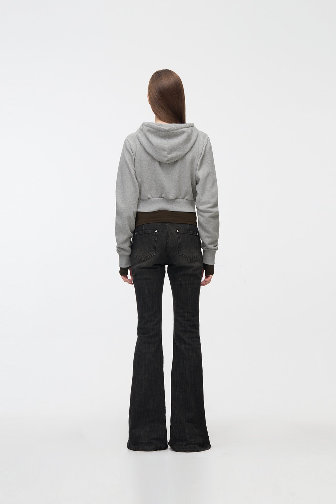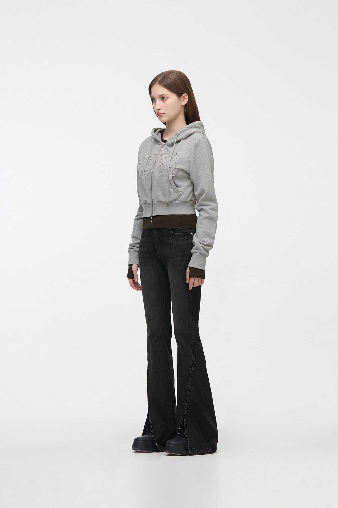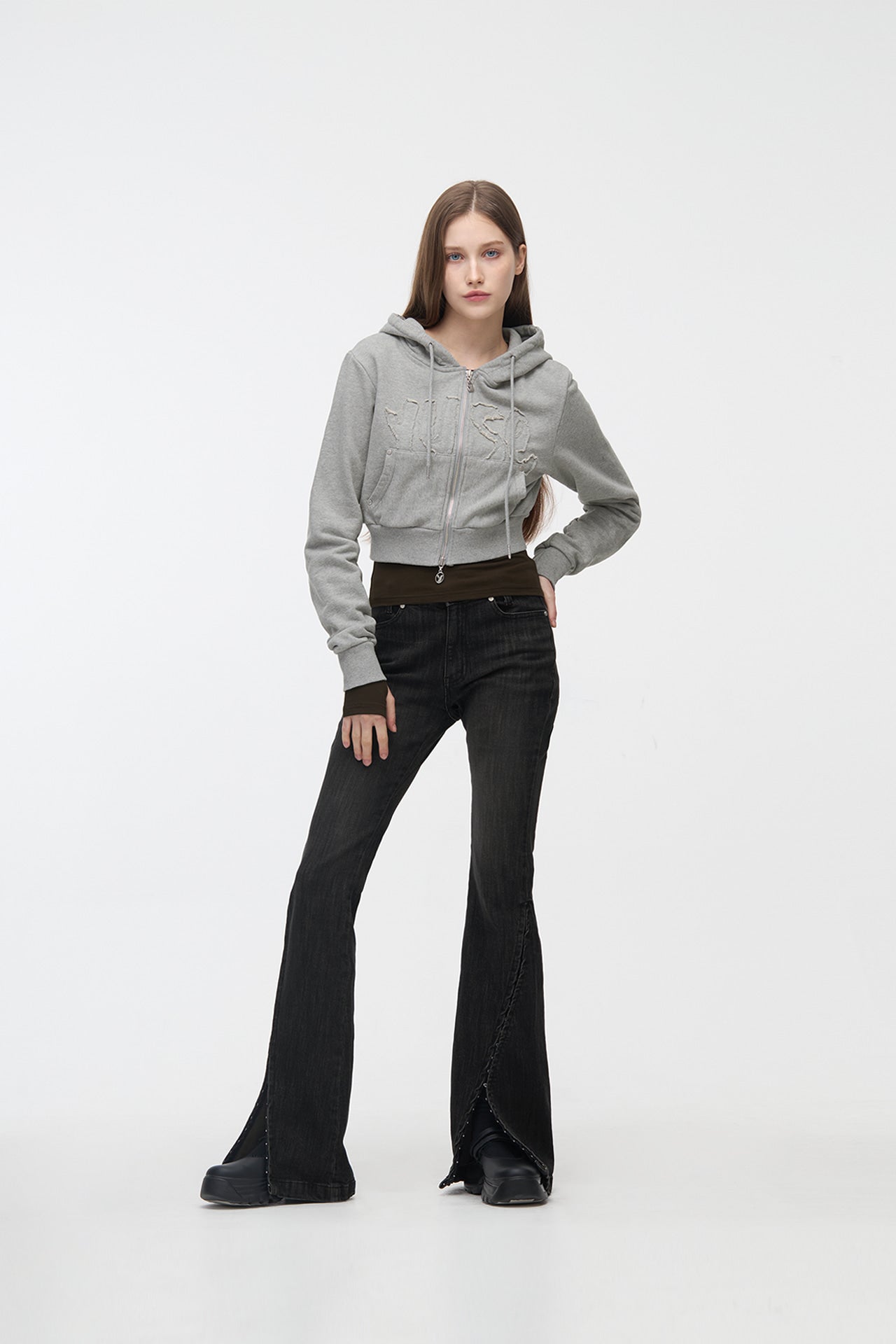 YUSE 2410 LOGO PATCH HOODIE ZIP-UP TOP - GRAY