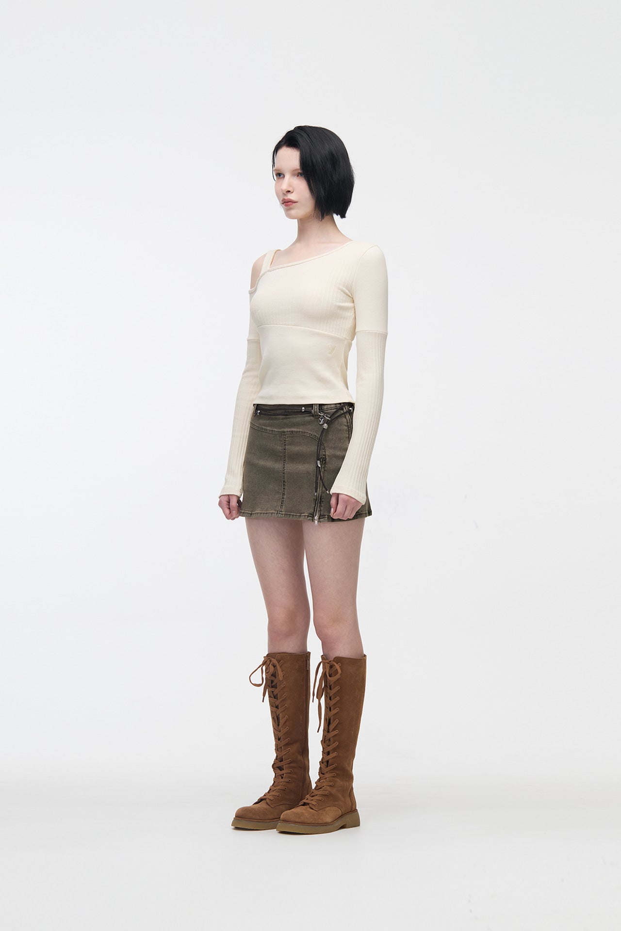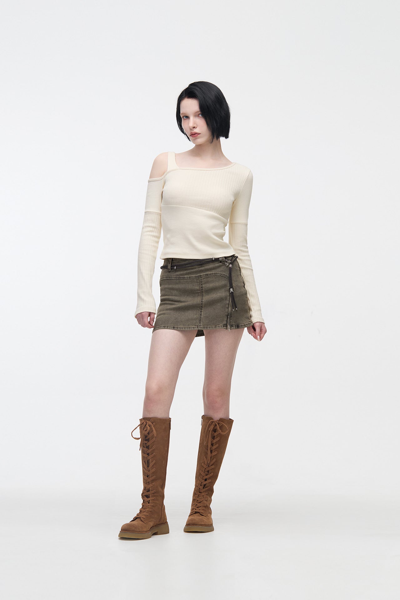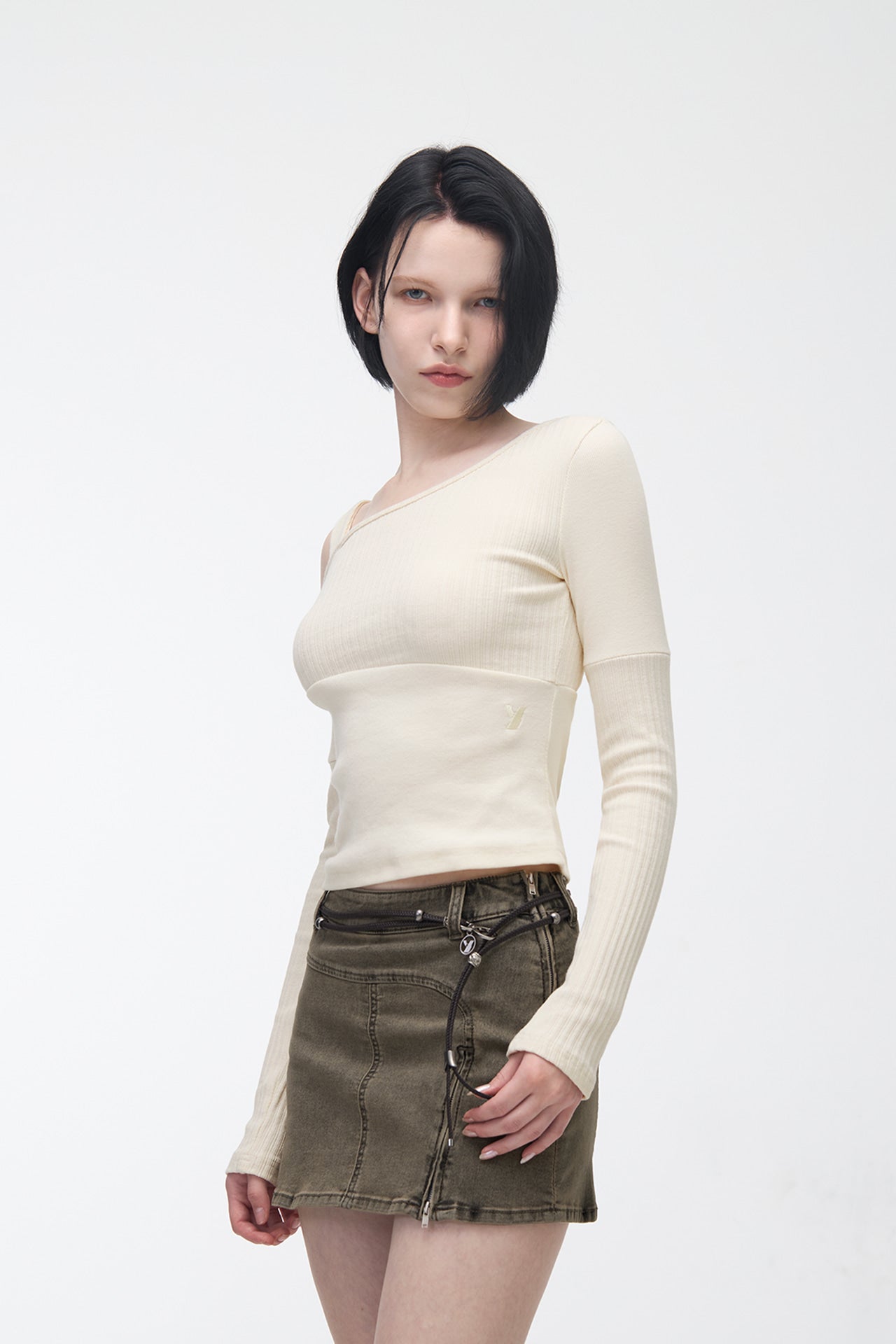 YUSE 2410 OFF SHOULDER LINE LAYERED TOP - LIGHT YELLOW