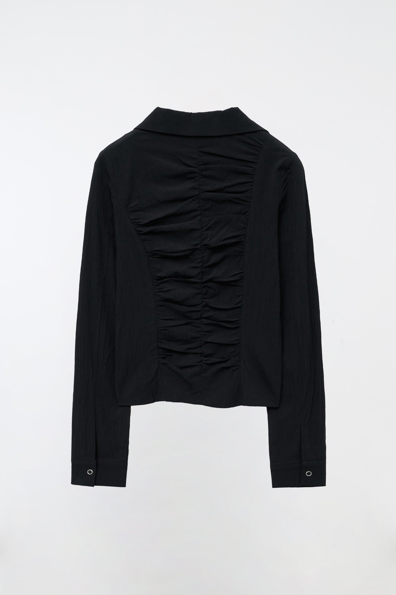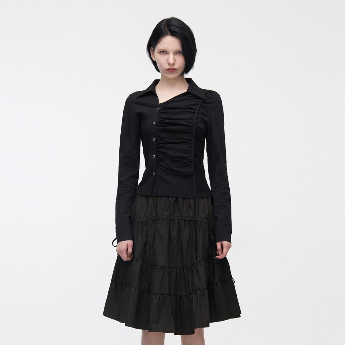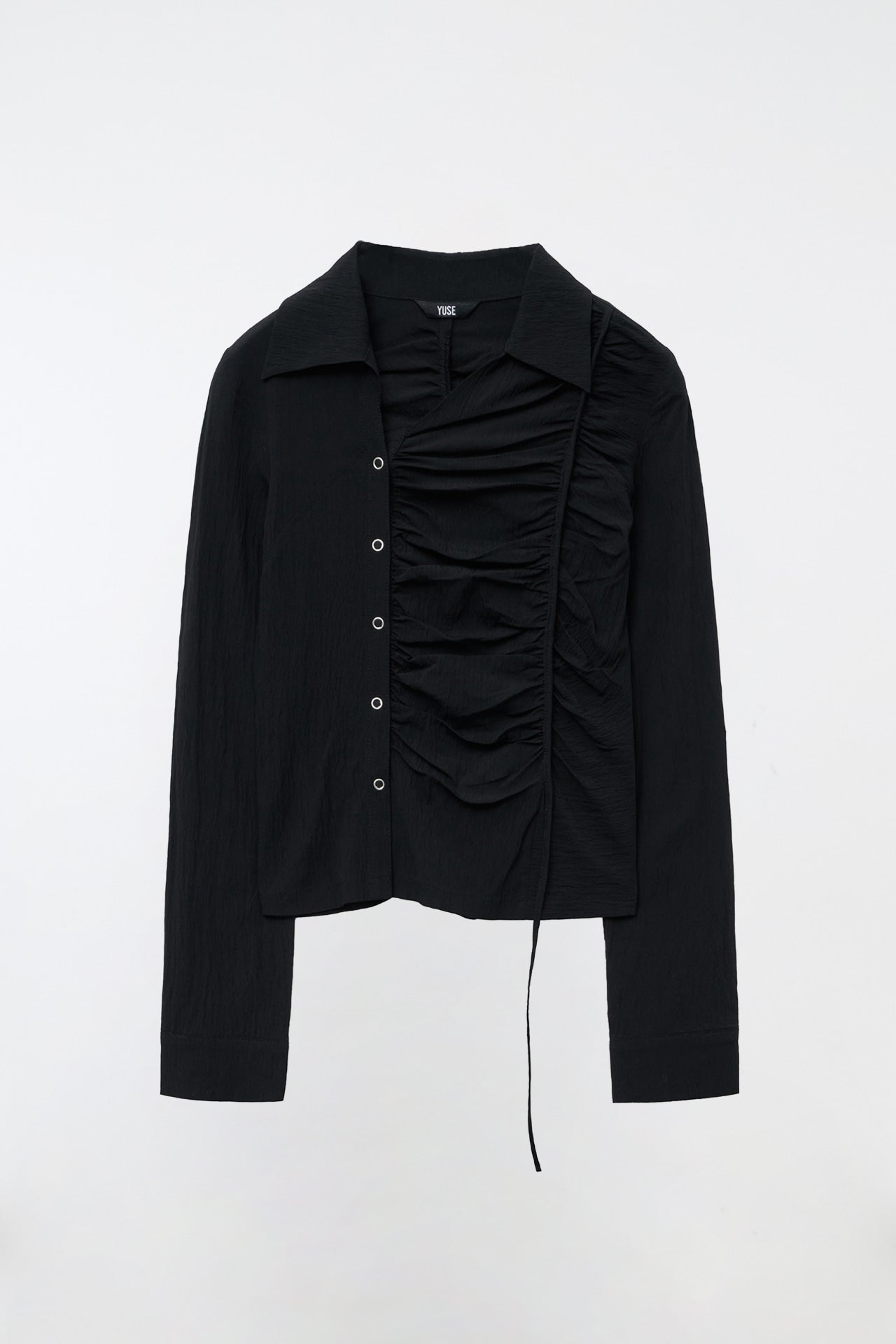 YUSE 2410 UNBALANCE SHIRRING SHIRT - BLACK
