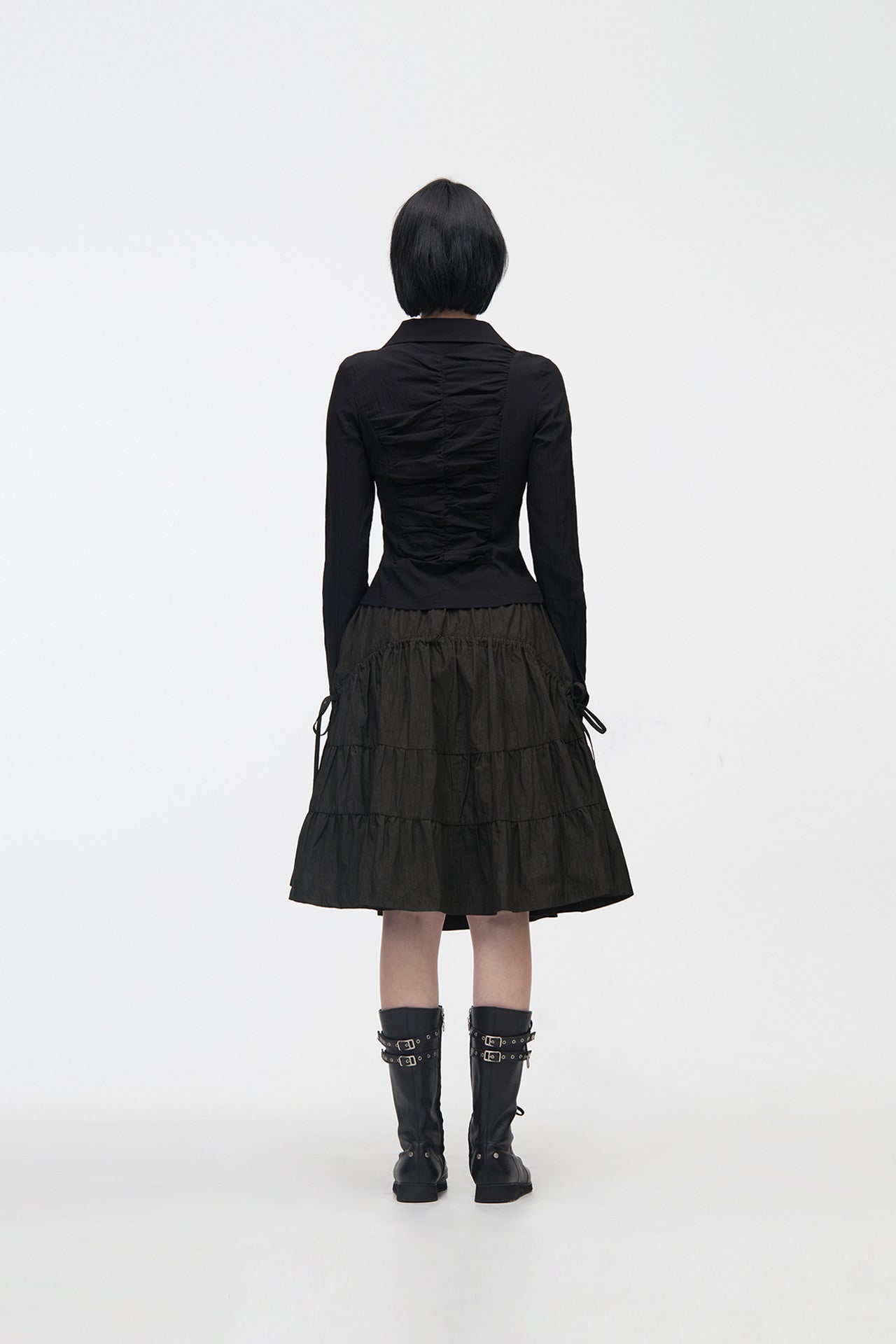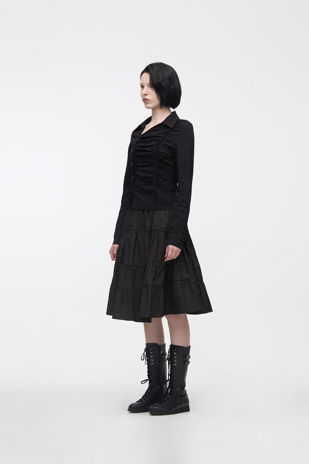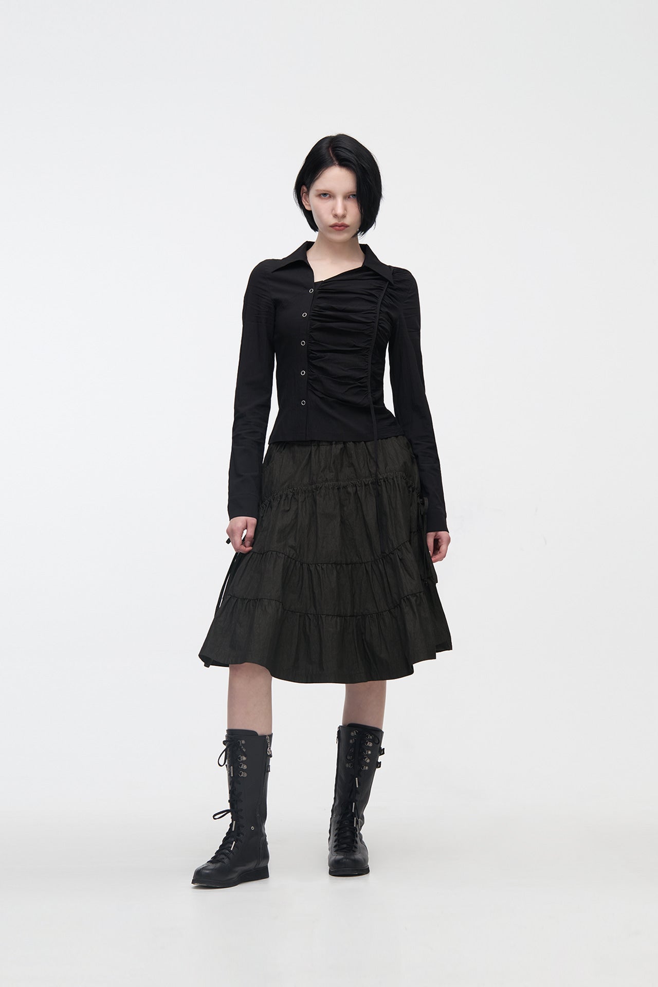 YUSE 2410 UNBALANCE SHIRRING SHIRT - BLACK