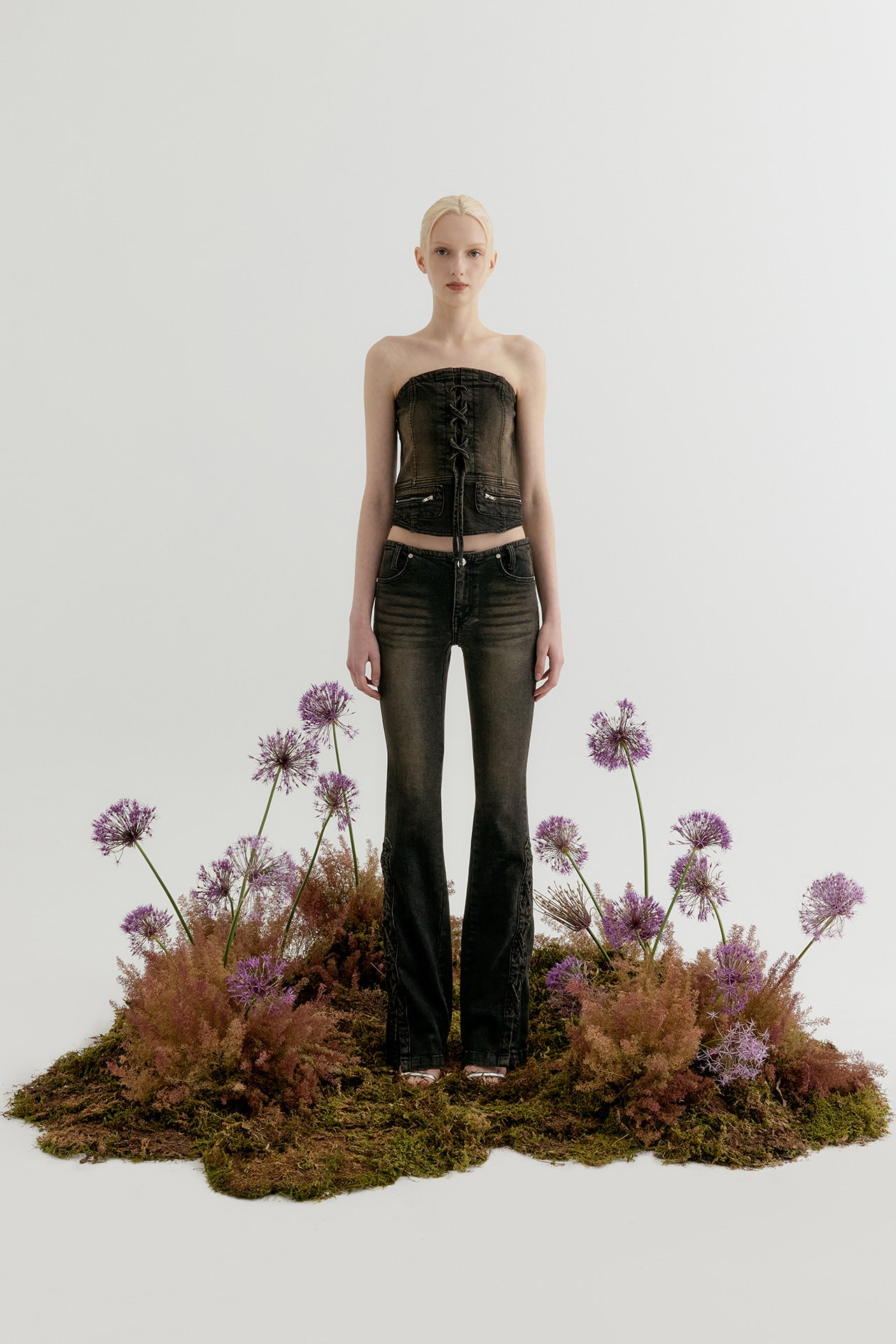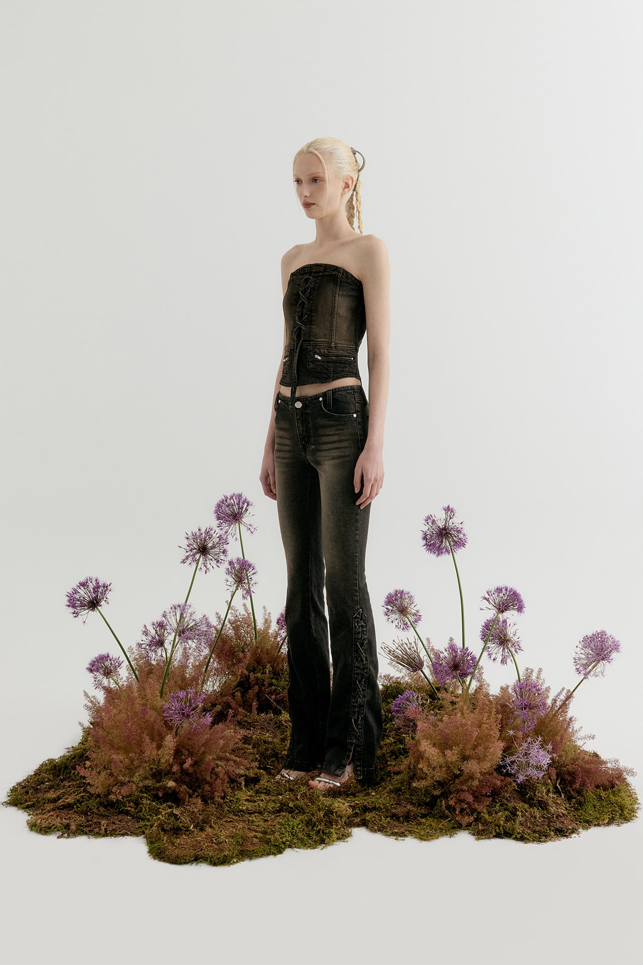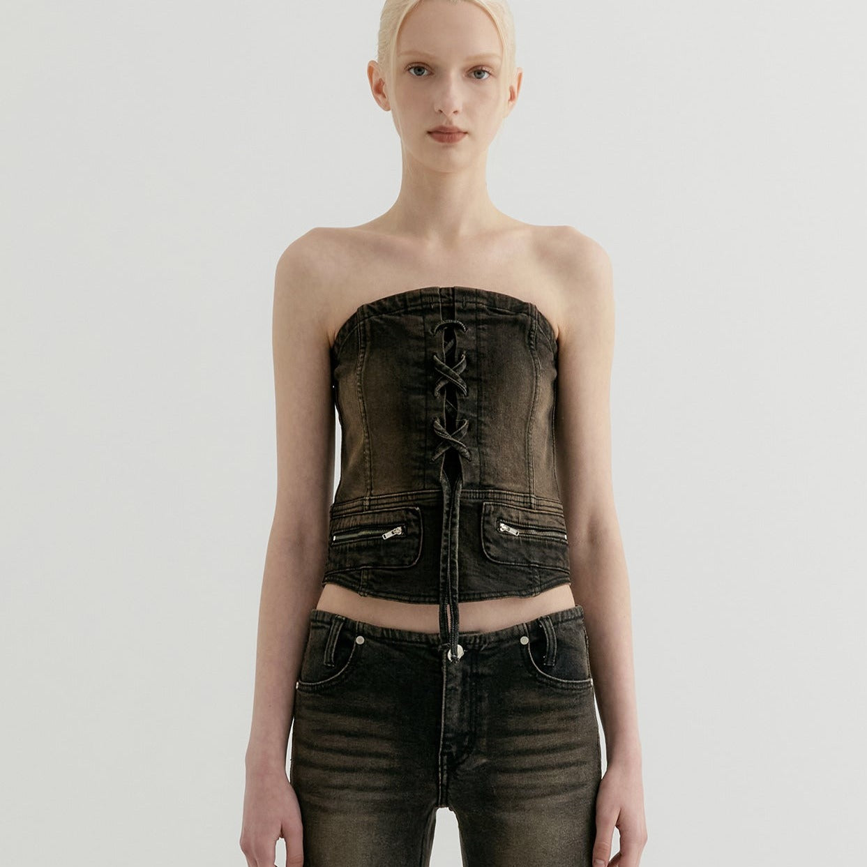 YUSE SS2312 LACE-UP DENIM TUBE TOP - BLACK