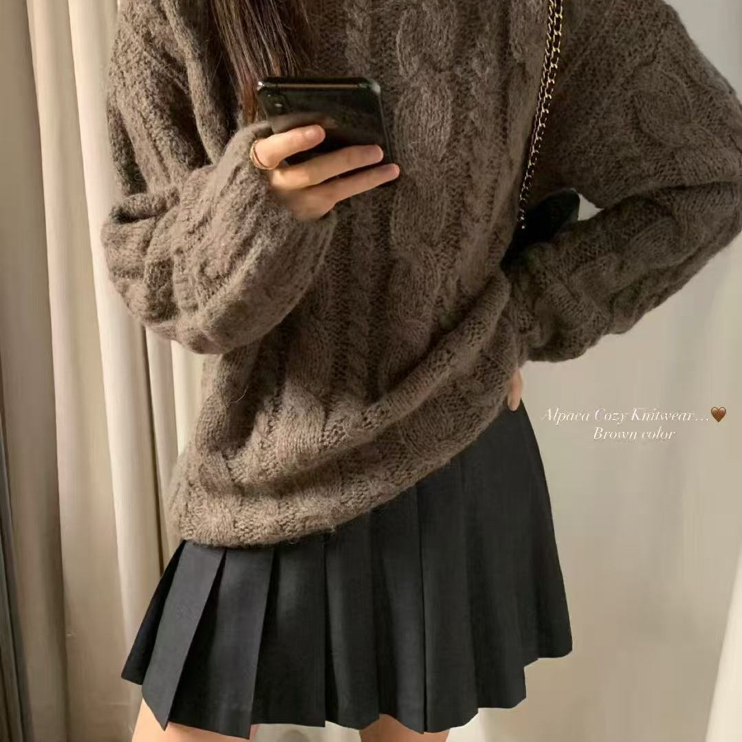 KOREAN COLLECTION 2510 松弛感麻花针织毛衣 咖
