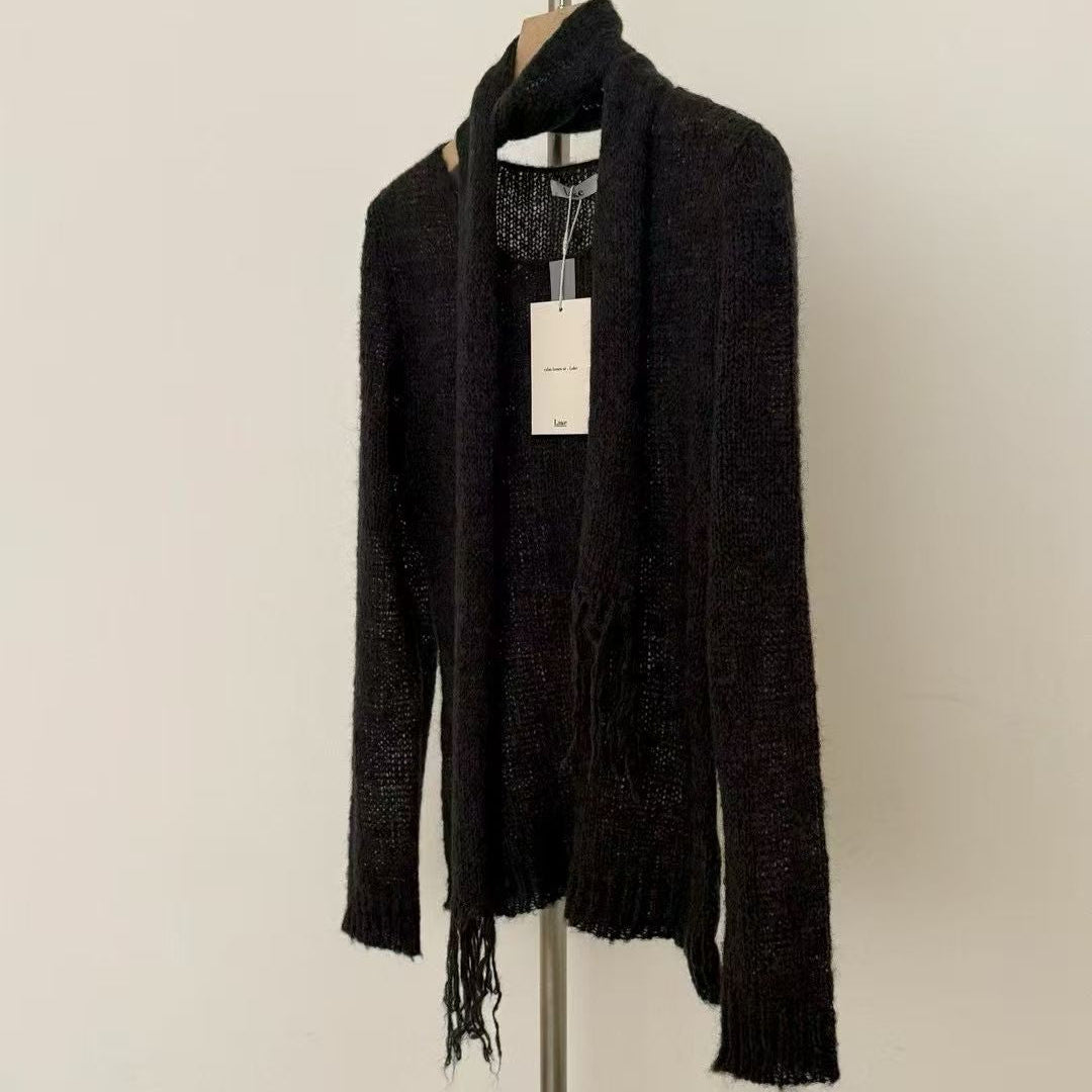 KOREAN COLLECTION 2510 可斜肩慵懒风围巾针织毛衣 深灰