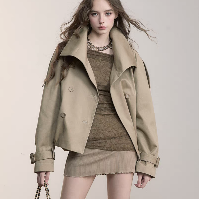 VIA PITTI 2510 复古立领收褶短款风衣外套