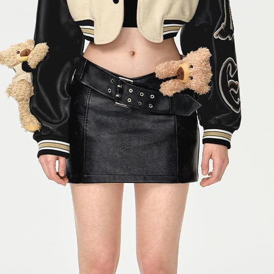 13DE MARZO | 2408 Bear Leather Bodycon Skirt Black