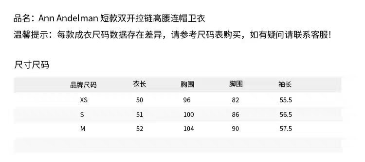 ANN ANDELMAN 2512 短款拉链高腰连帽外套