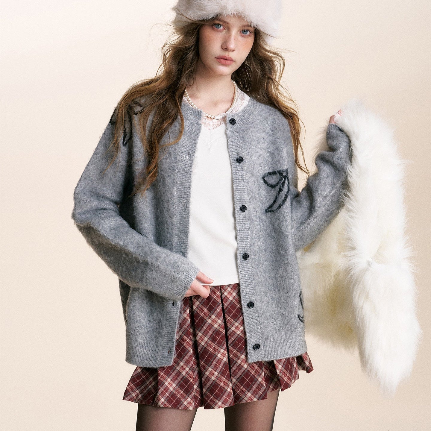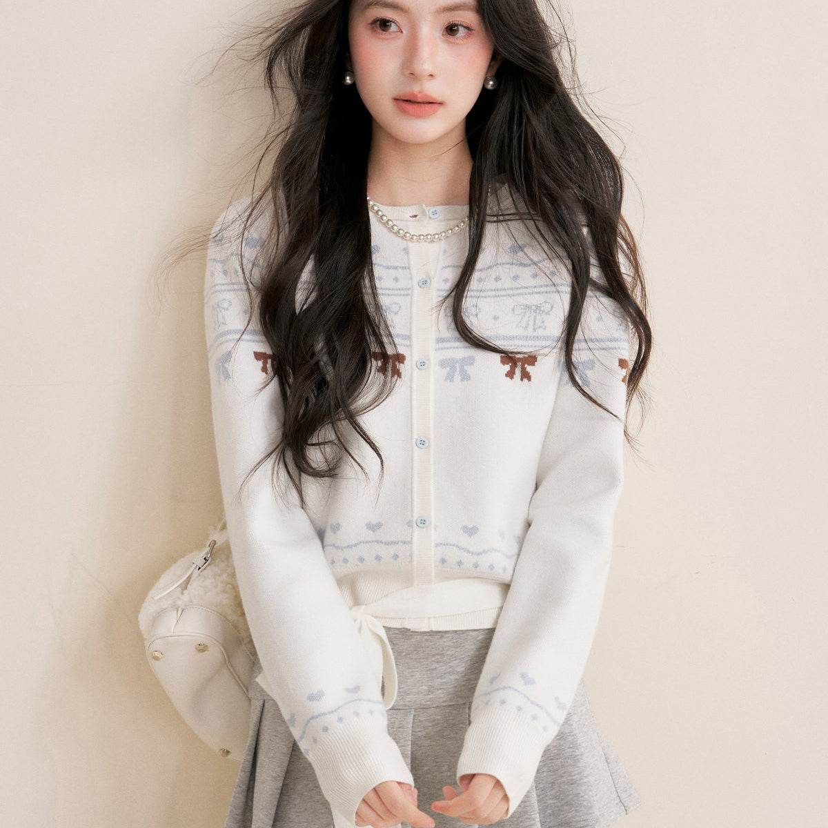 Kroche 2602 蝴蝶结拉毛宽松毛衣开衫