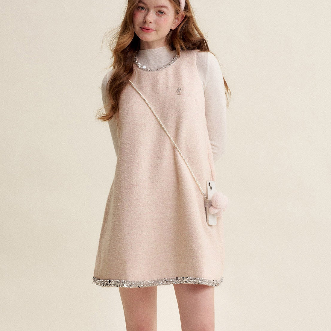 Kroche 2602 羊毛混纺 钉珠小香风宽松A字连衣裙
