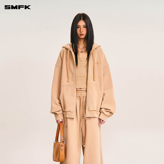 SMFK 2511 野性复古阔身运动拉链帽衫 褪色沙漠