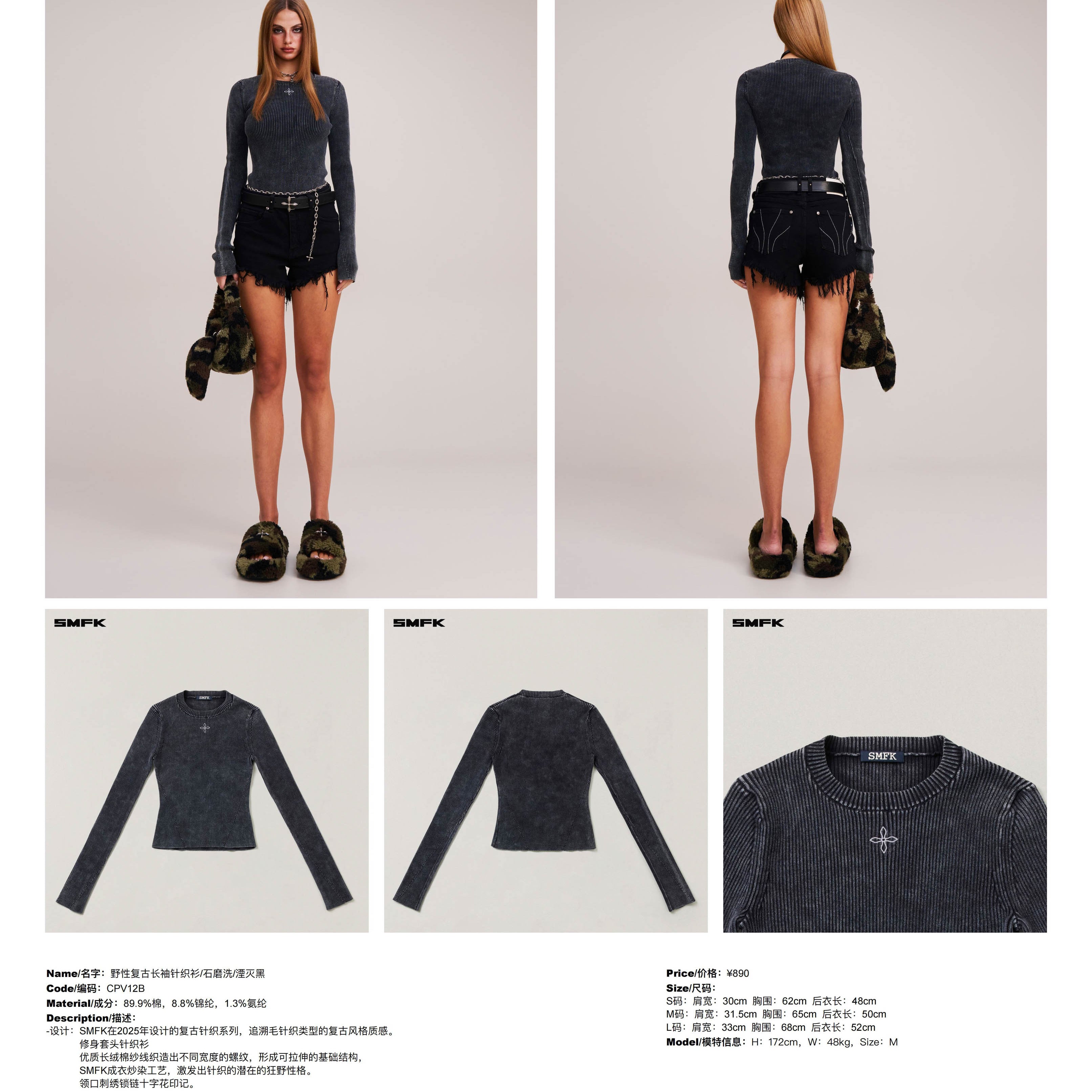 SMFK 2512 野性复古长袖针织衫/石磨洗/湮灭黑