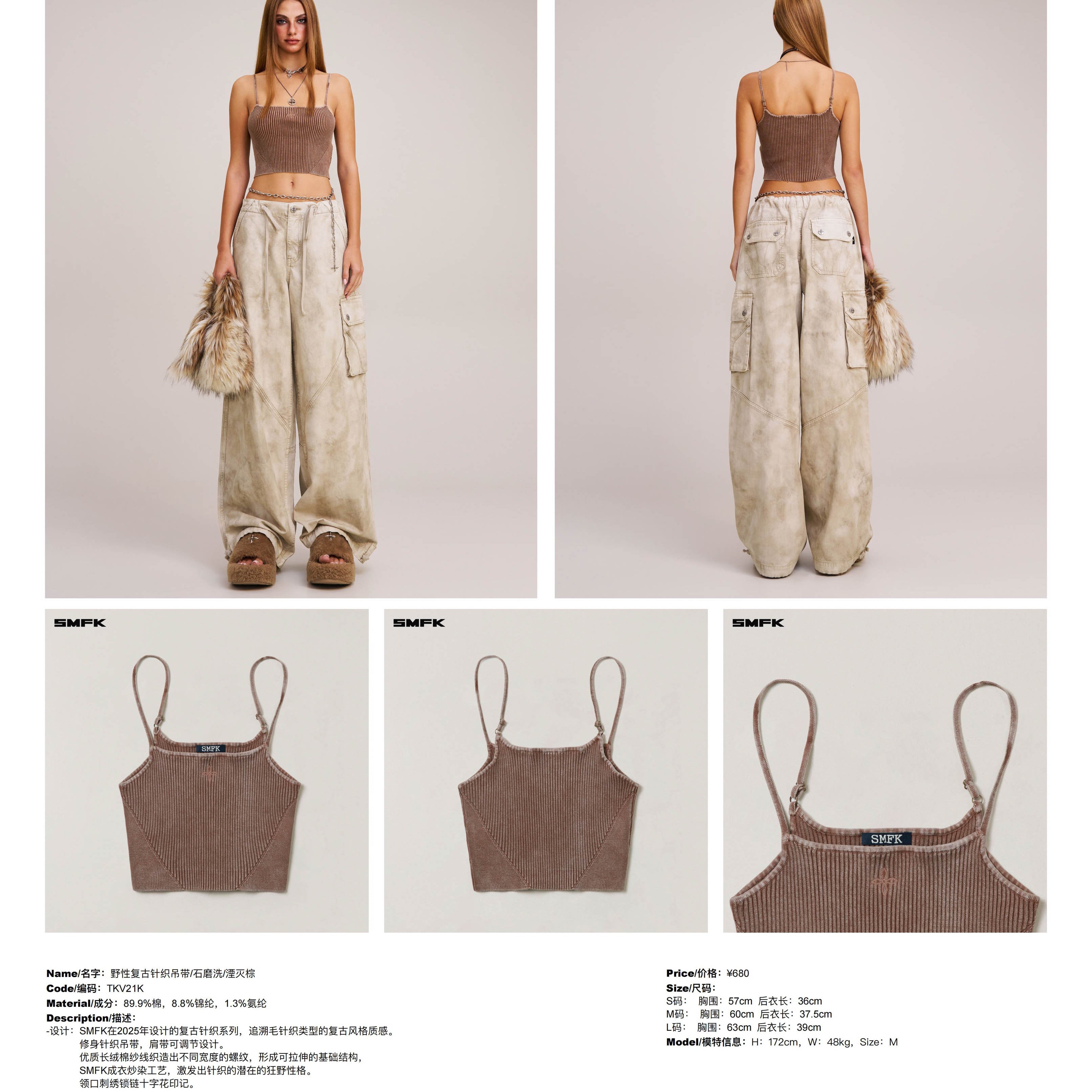 SMFK 2512 野性复古针织吊带/石磨洗/湮灭棕