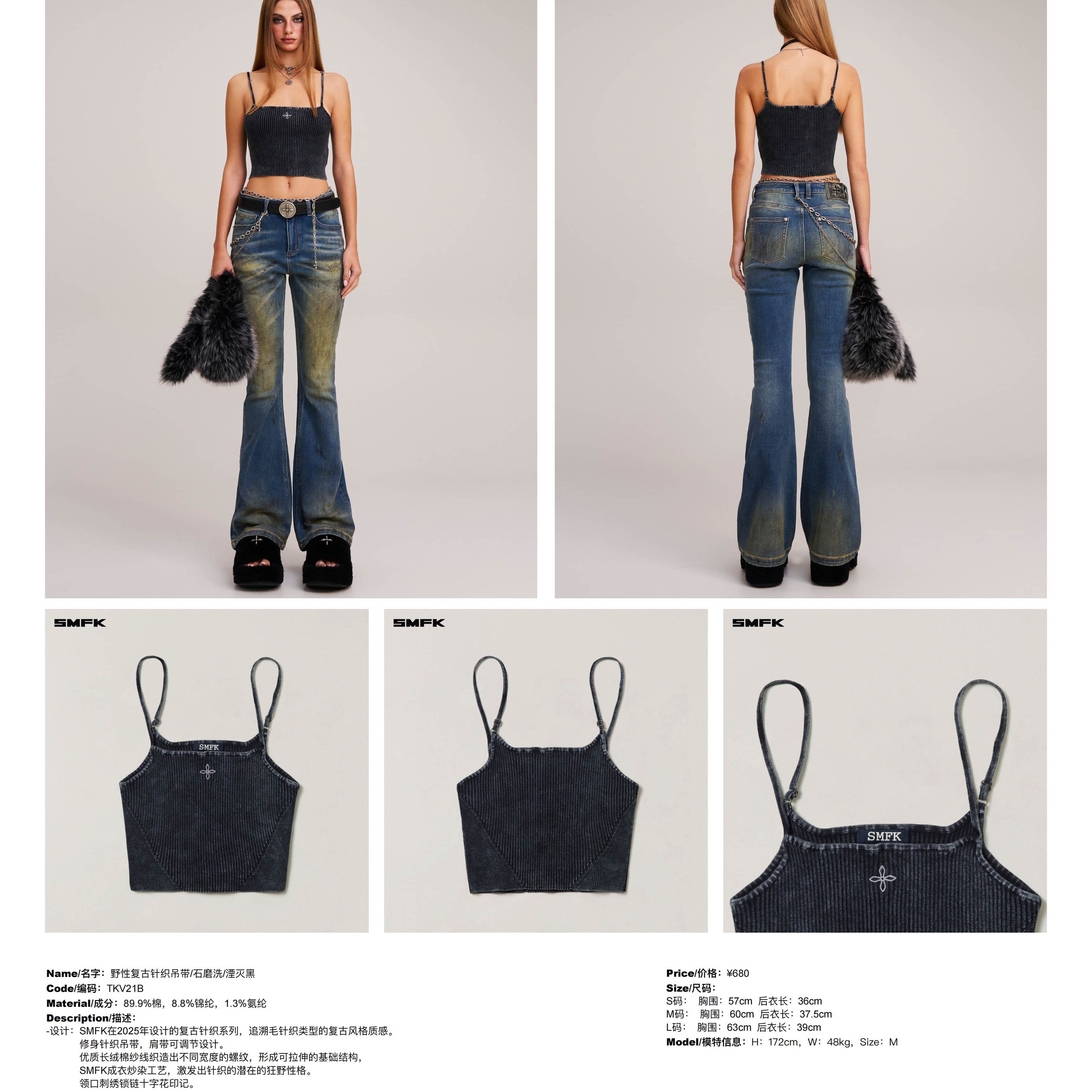 SMFK 2512 野性复古针织吊带/石磨洗/湮灭黑