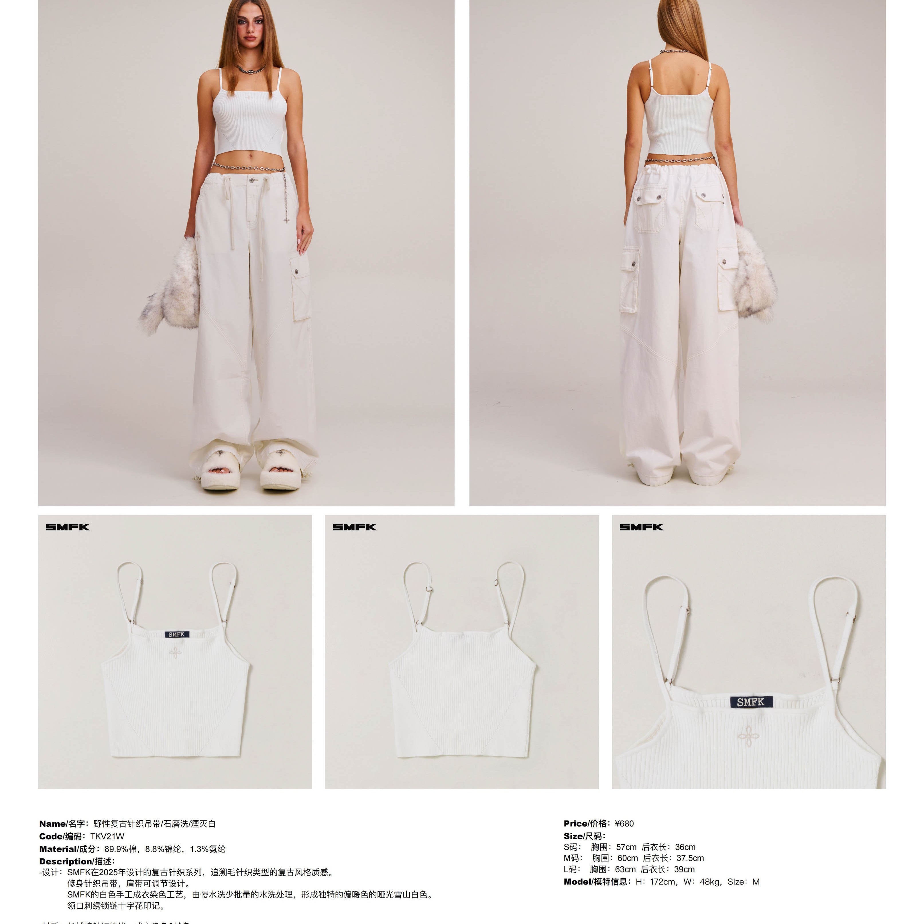 SMFK 2512 野性复古针织吊带/石磨洗/湮灭白