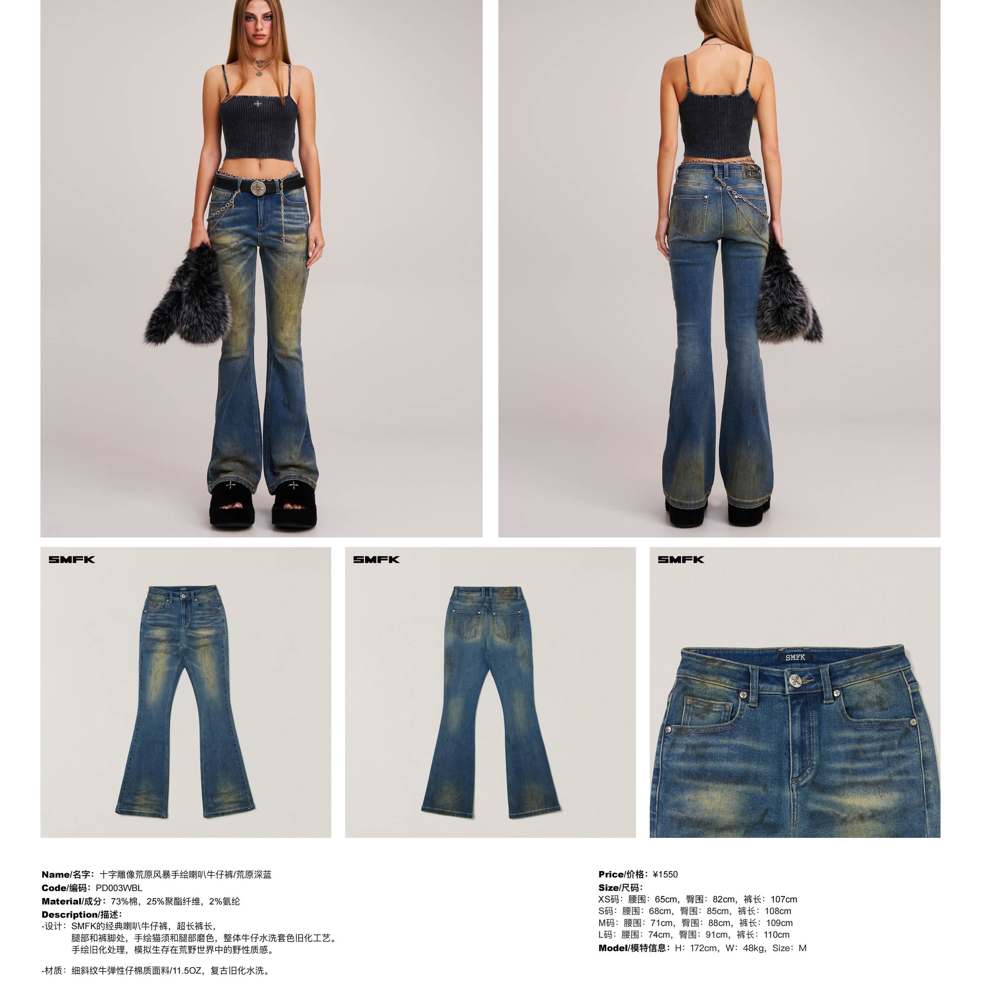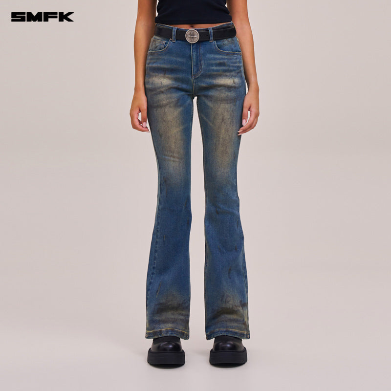 SMFK 2512 十字雕像荒原风暴手绘喇叭牛仔裤/荒原深蓝