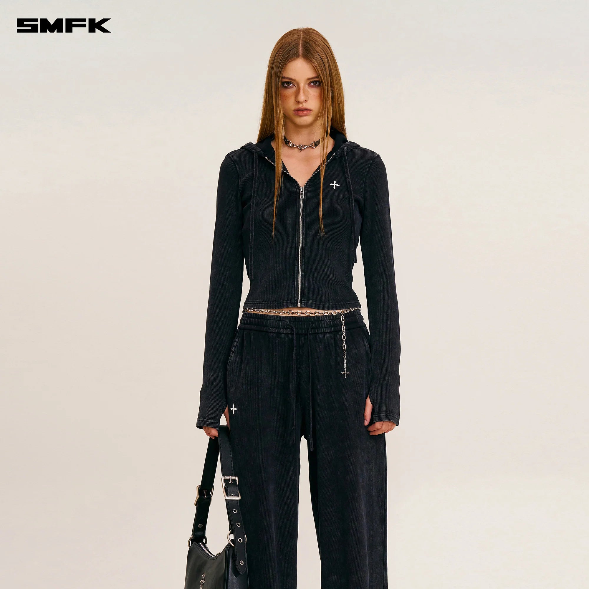 SMFK 2512 野性复古修身拉链帽衫 湮灭黑