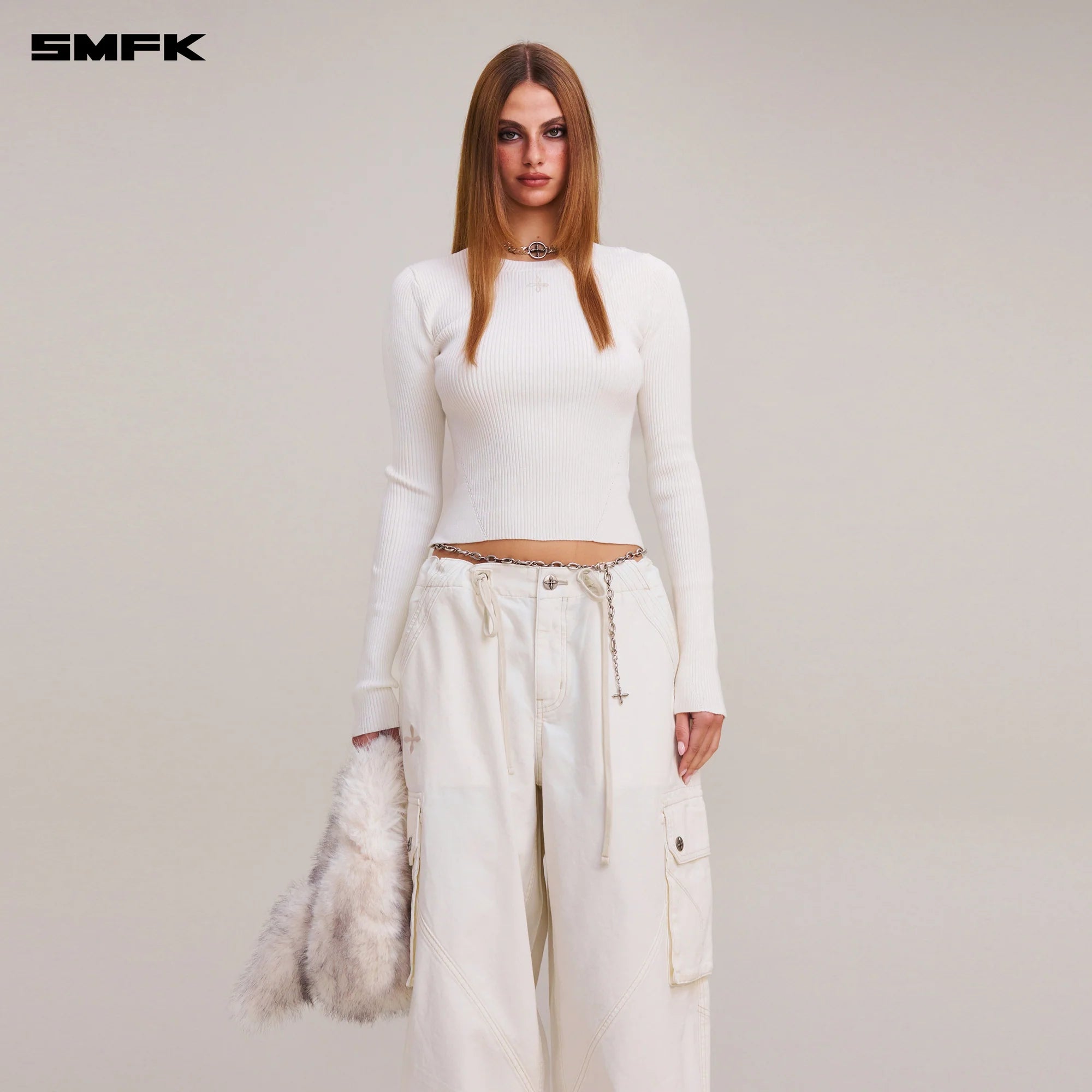 SMFK 2512 野性复古圆领长袖针织衫 湮灭白