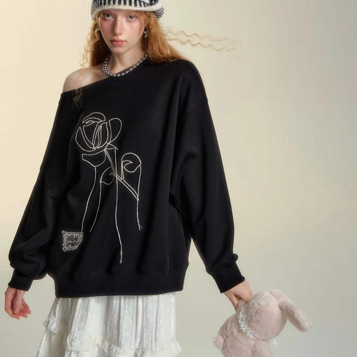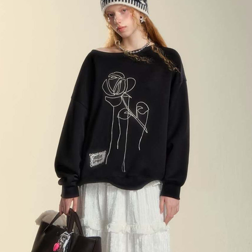 SOMESOWE 2510 流苏花朵斜肩卫衣