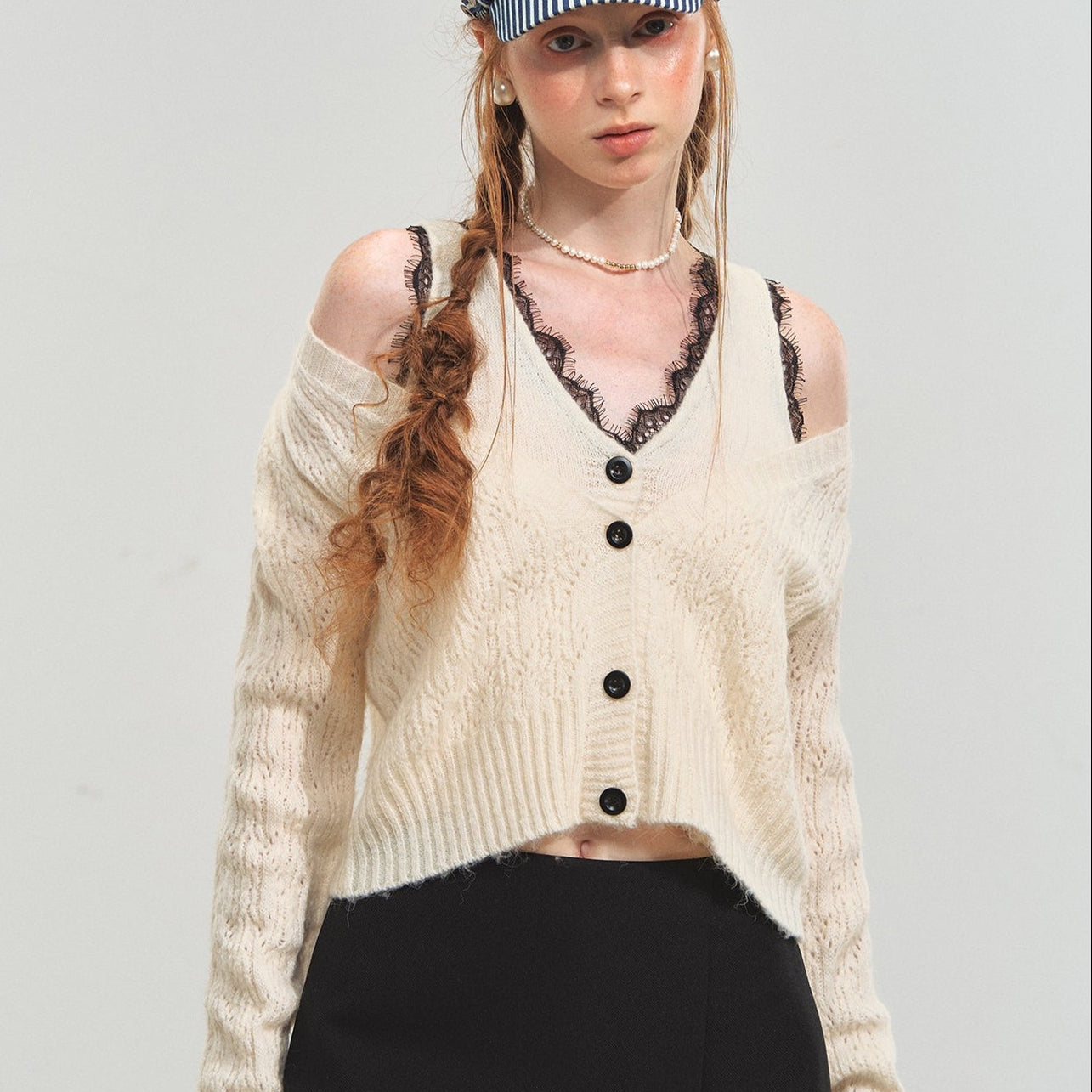 SOMESOWE 2510 纯欲蕾丝V领假两件开衫