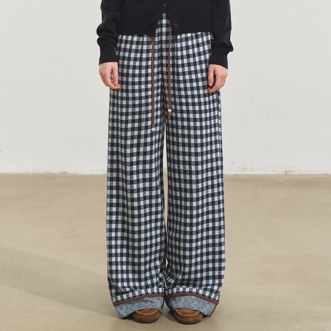 SOMESOWE 2509 慵懒格纹阔腿休闲裤