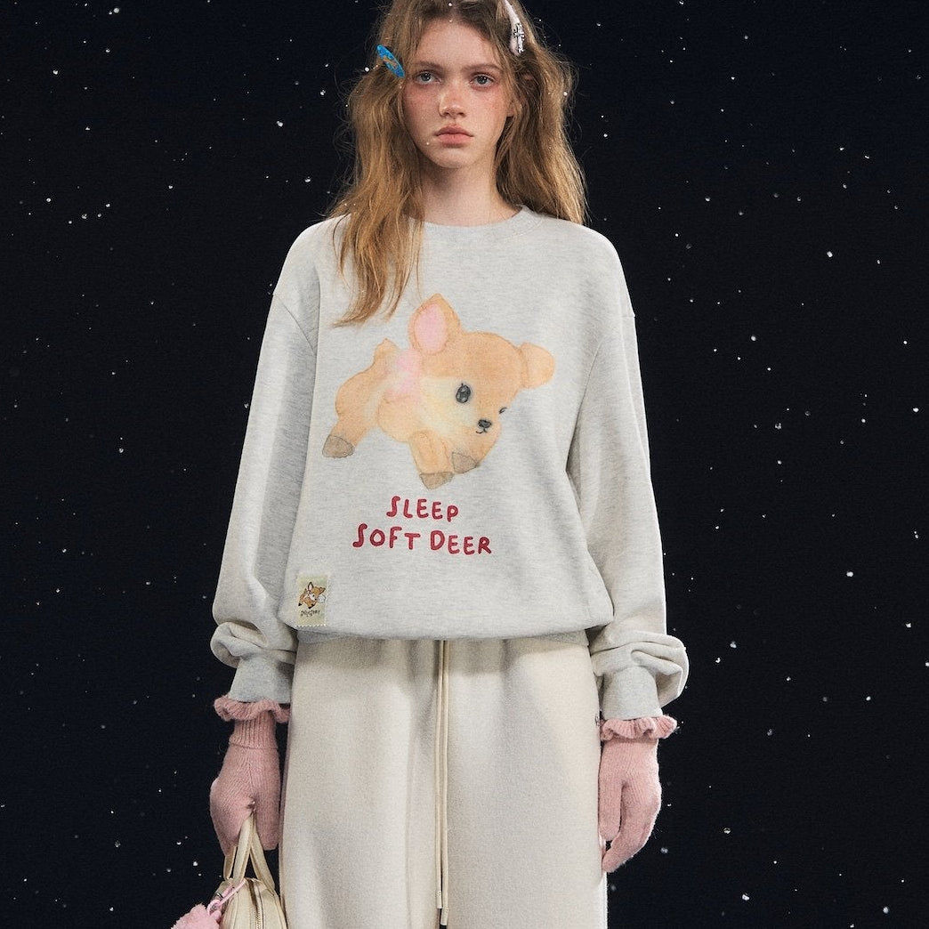 SOMESOWE 2601 小鹿绒绒圆领长袖卫衣 灰白