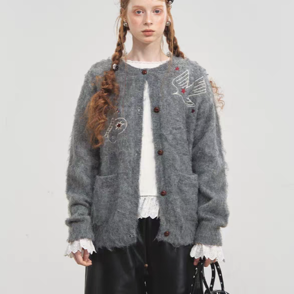 SOMESOWE 2510 飞鸟与蝴蝶毛衣开衫 灰