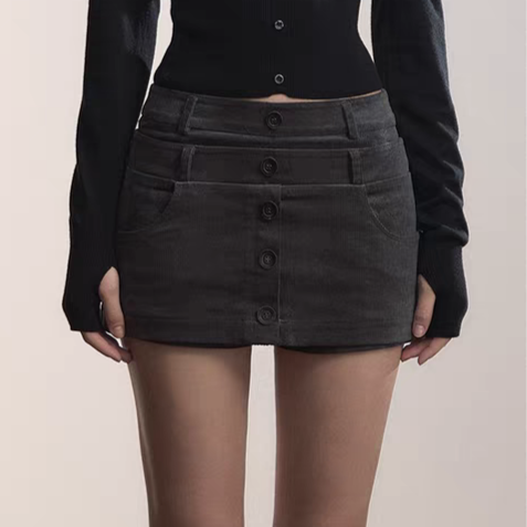 VIA PITTI 2512 辣妹排扣灯芯绒短裙裤 深灰