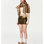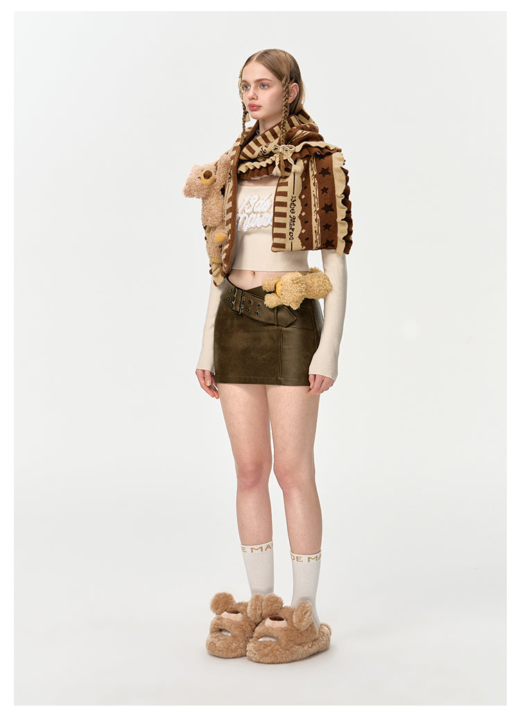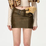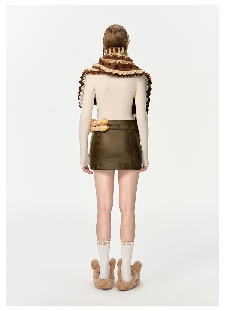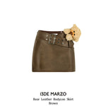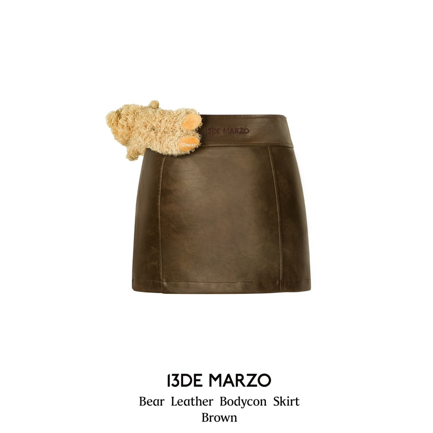 13DE MARZO | 2408 Bear Leather Bodycon Skirt Brown