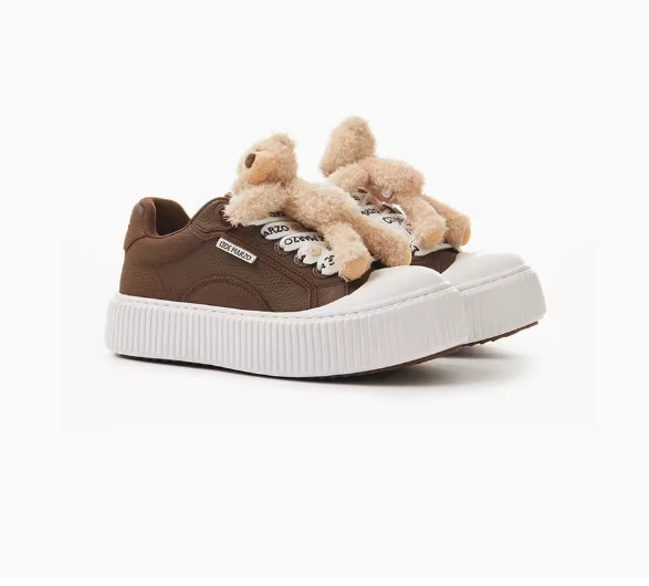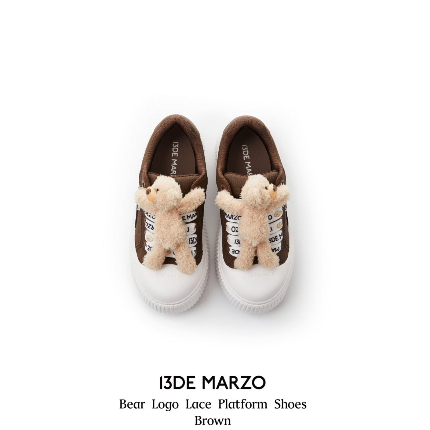 13DE MARZO | 2408 Bear Logo Lace Platform Shoes Brown