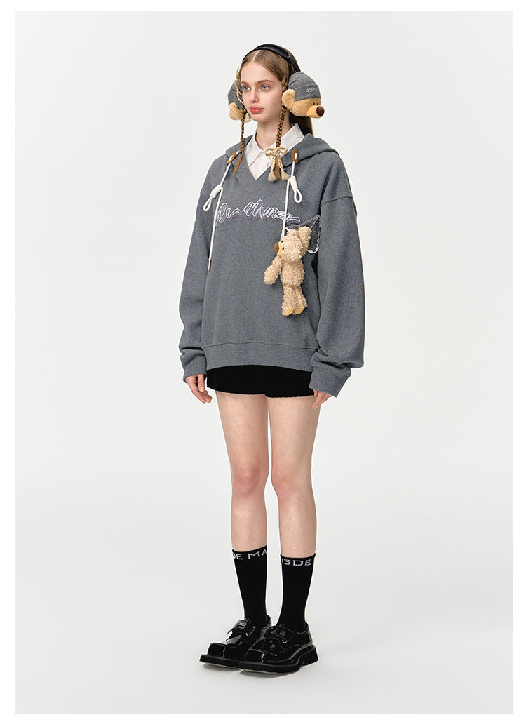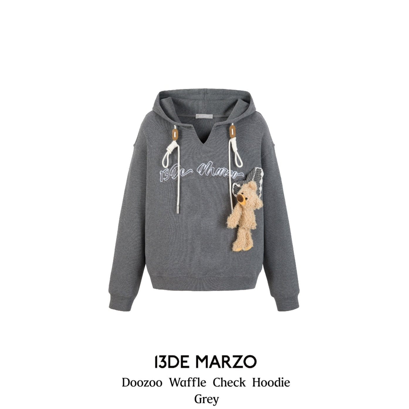 13DE MARZO | 2408 Doozoo Waffle Check Hoodie Grey