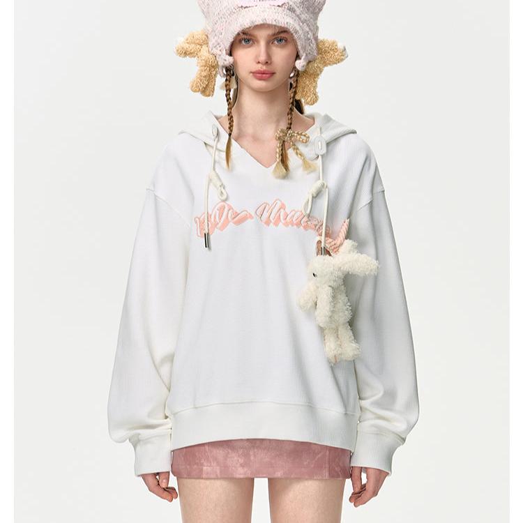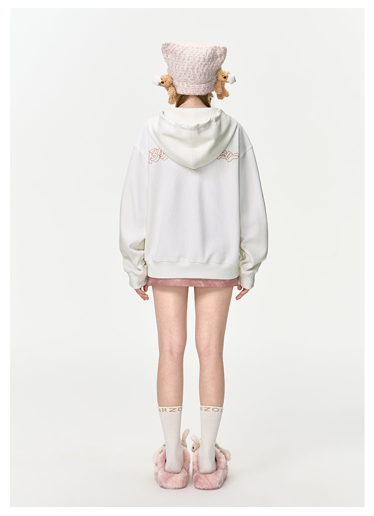 13DE MARZO | 2408 Doozoo Waffle Check Hoodie White