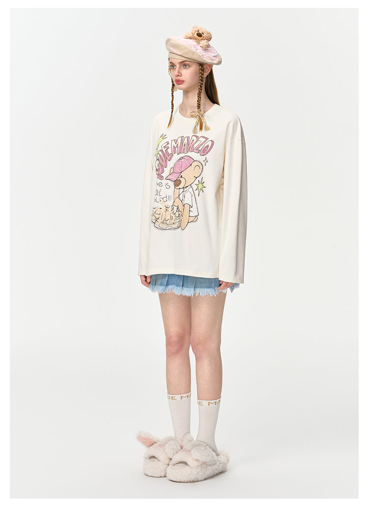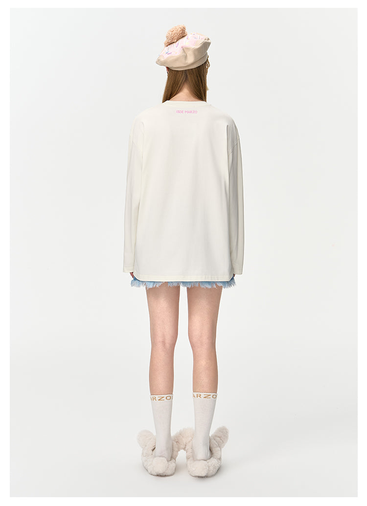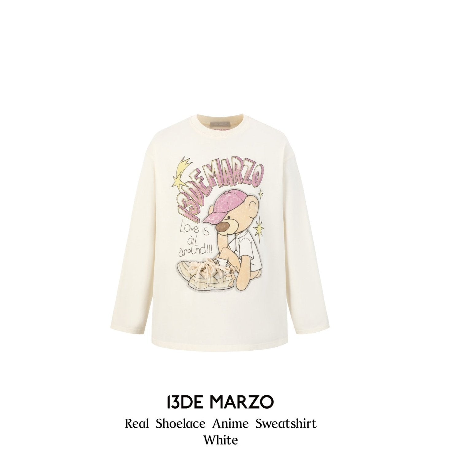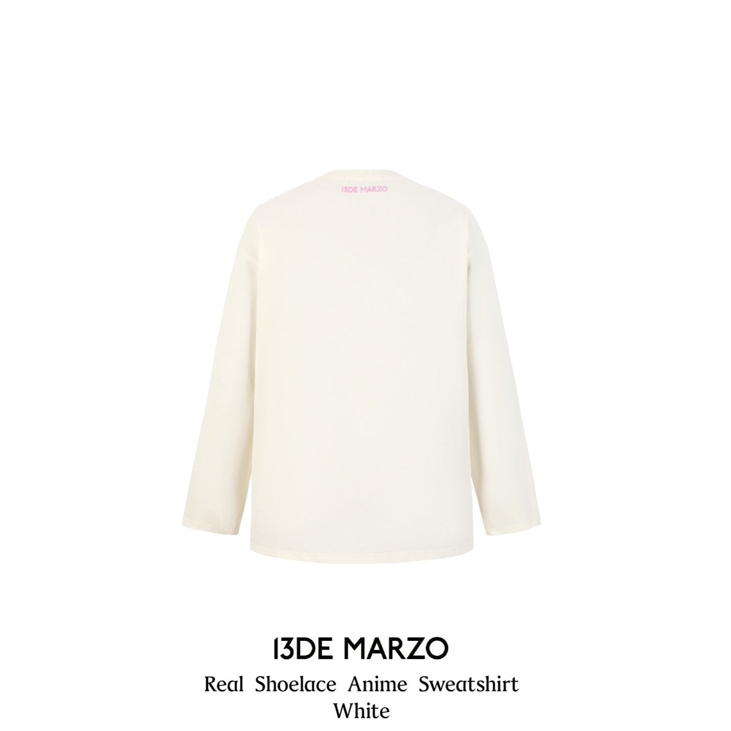 13DE MARZO | 2408 Real Shoelace Anime Sweatshirt White