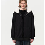 13DE MARZO | 2410 Bear Zip Fuzzy Hoodie Black