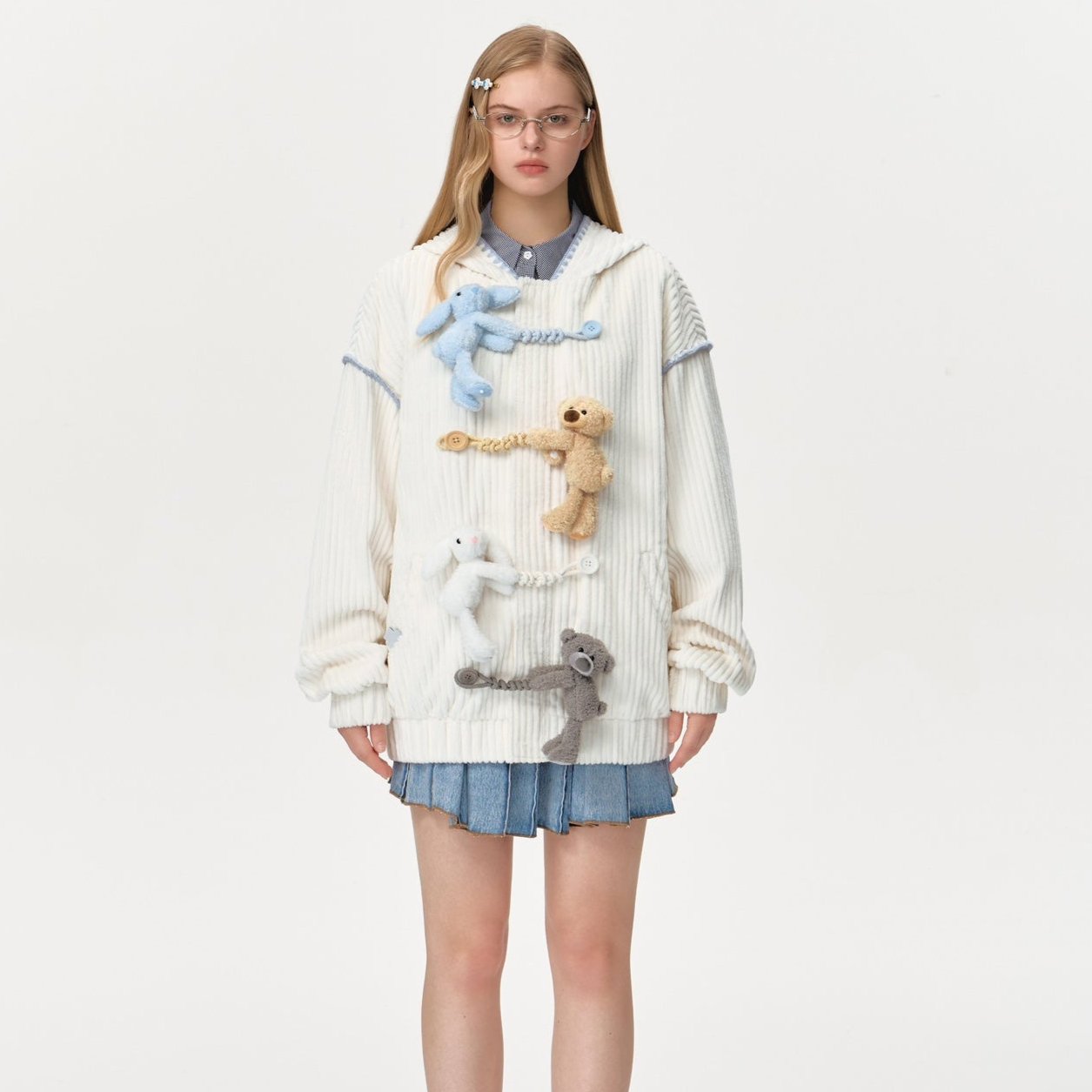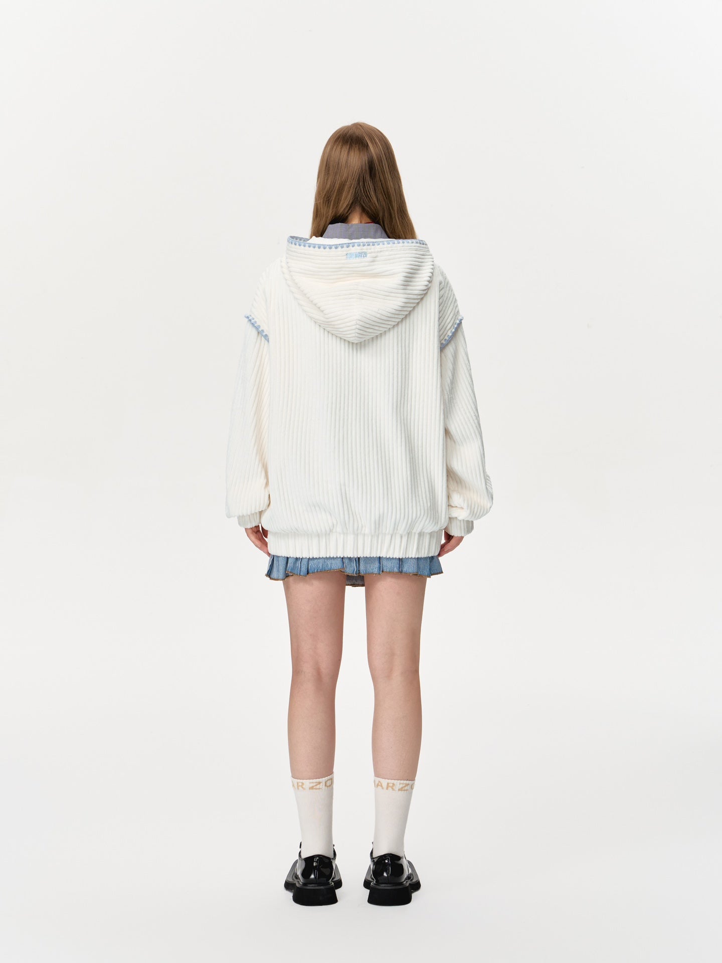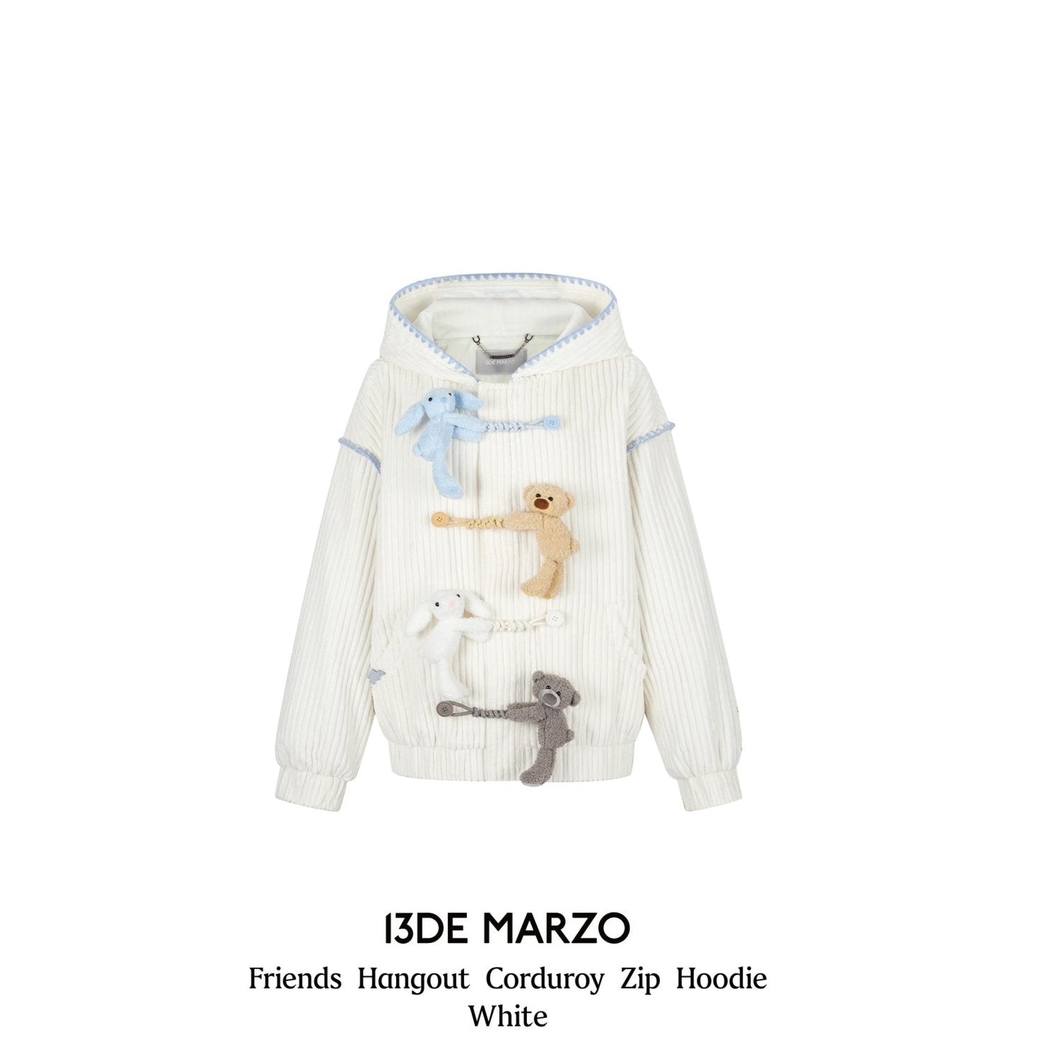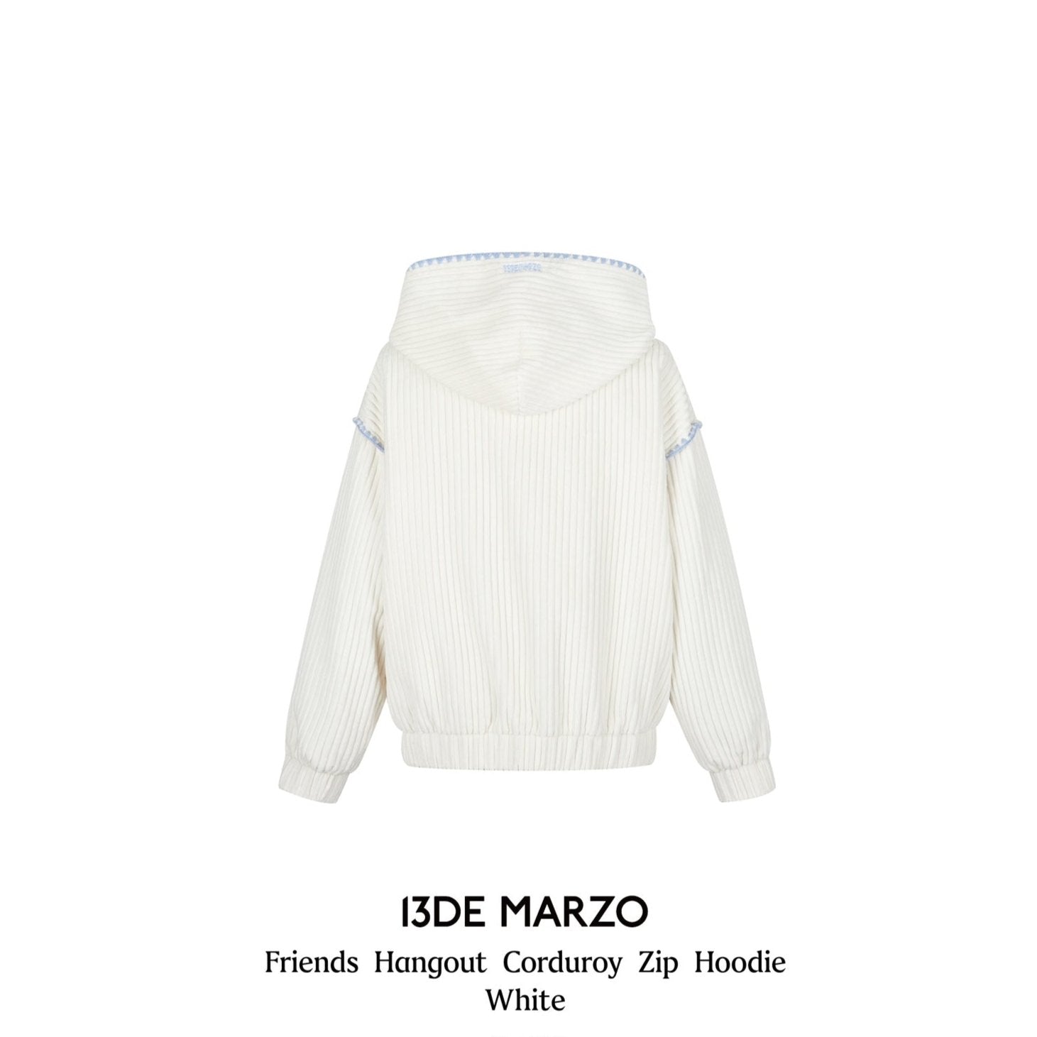 13DE MARZO | 2410 Friends Hangout Corduroy Zip Hoodie White