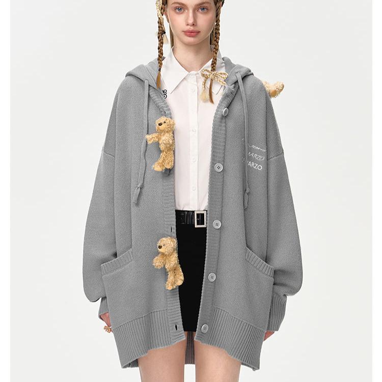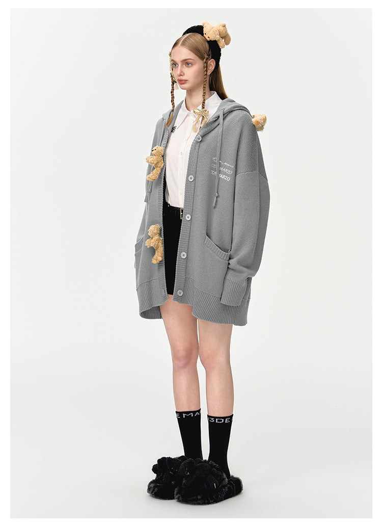 13DE MARZO | 2412 Bear Button Hood Cardigan