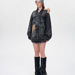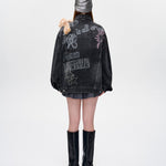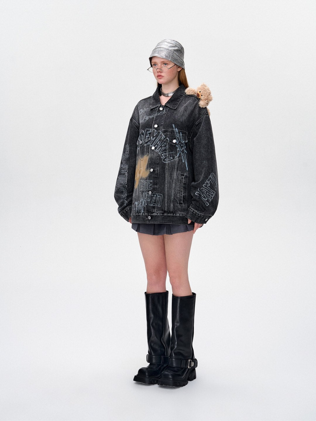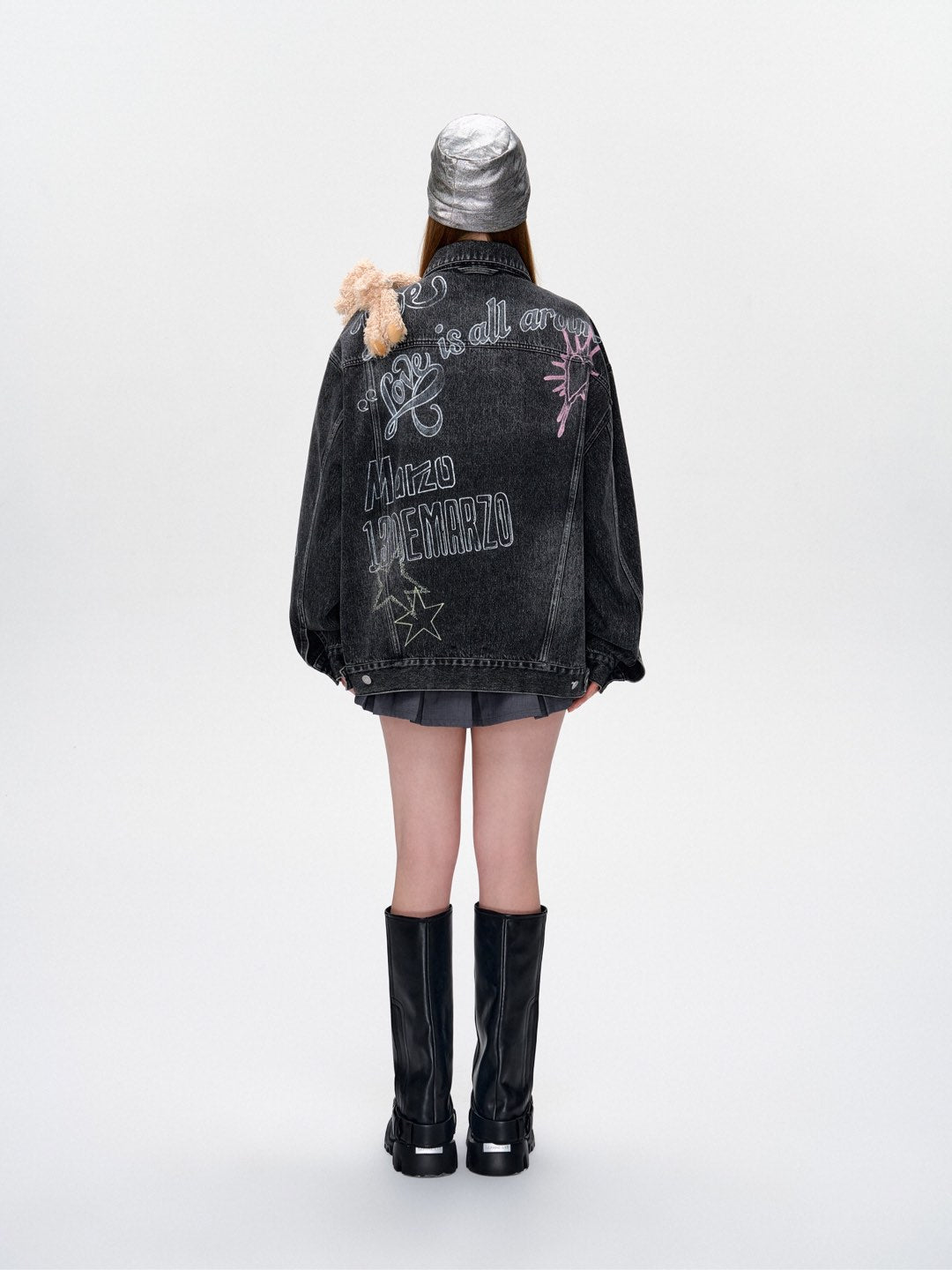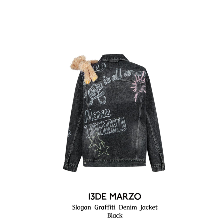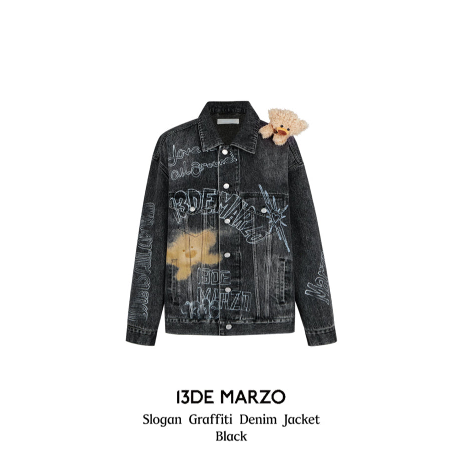 13DE MARZO | 2501 Slogan Graffiti Denim Jacket Black