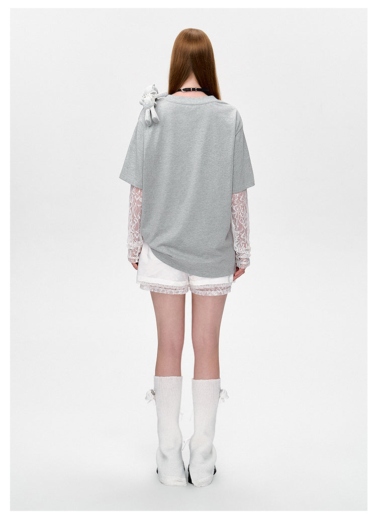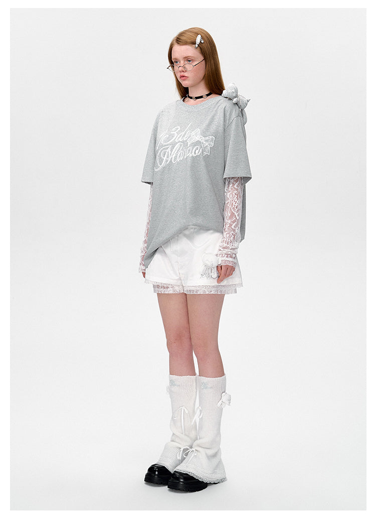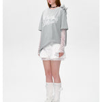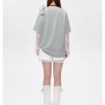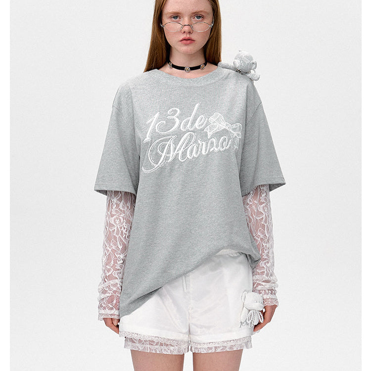 13DE MARZO | 2503 Bear Layered Lacy T-shirt Greyi