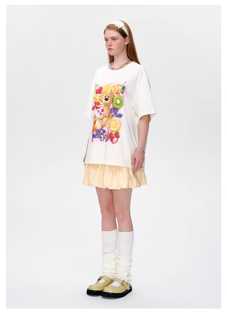 13DE MARZO | 2503 Bear With Fruit T-shirt White