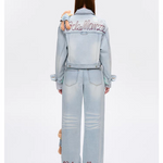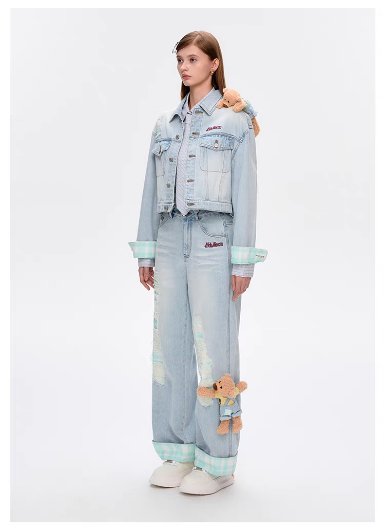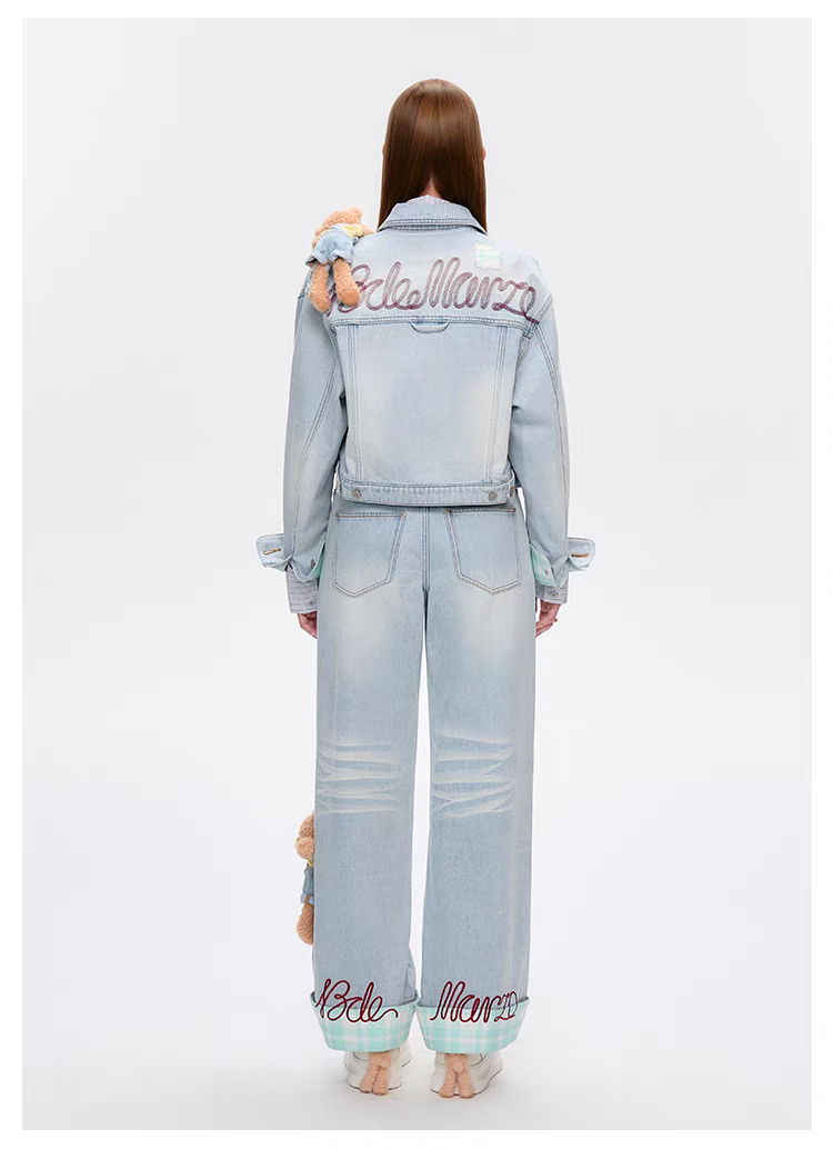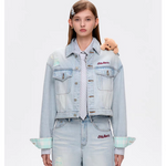 13DE MARZO | 2503 Plaid Cuffed Sleeve Denim Jacket Blue