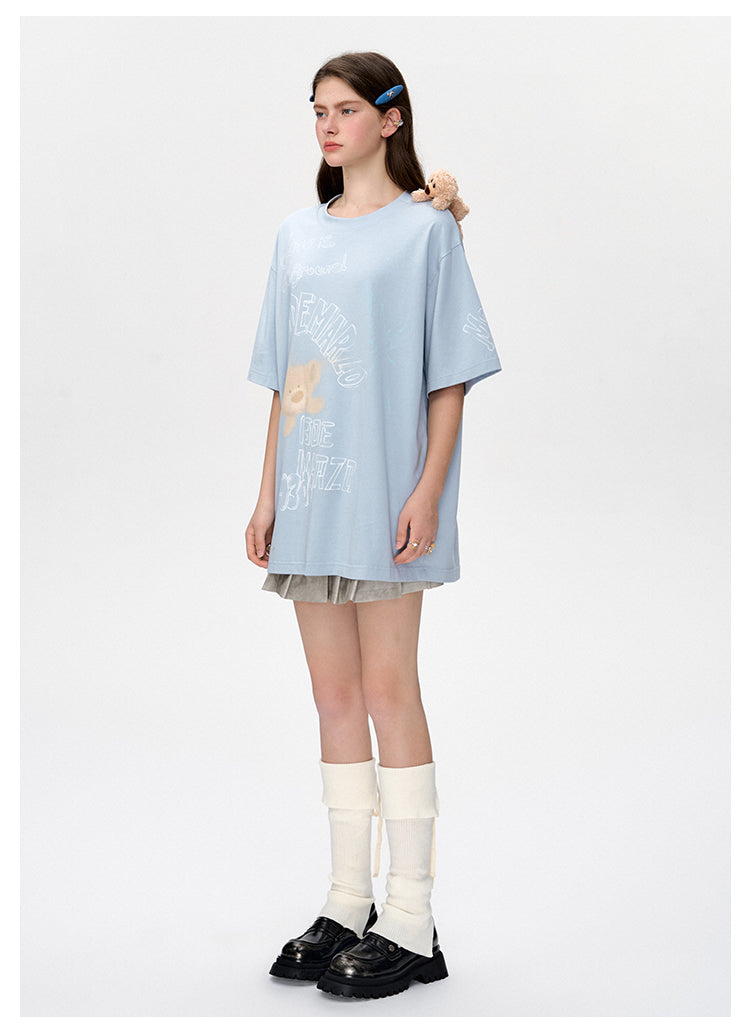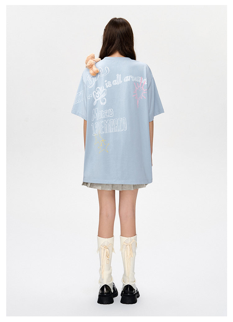 13DE MARZO | 2503 Slogan Graffiti T-shirt Blue