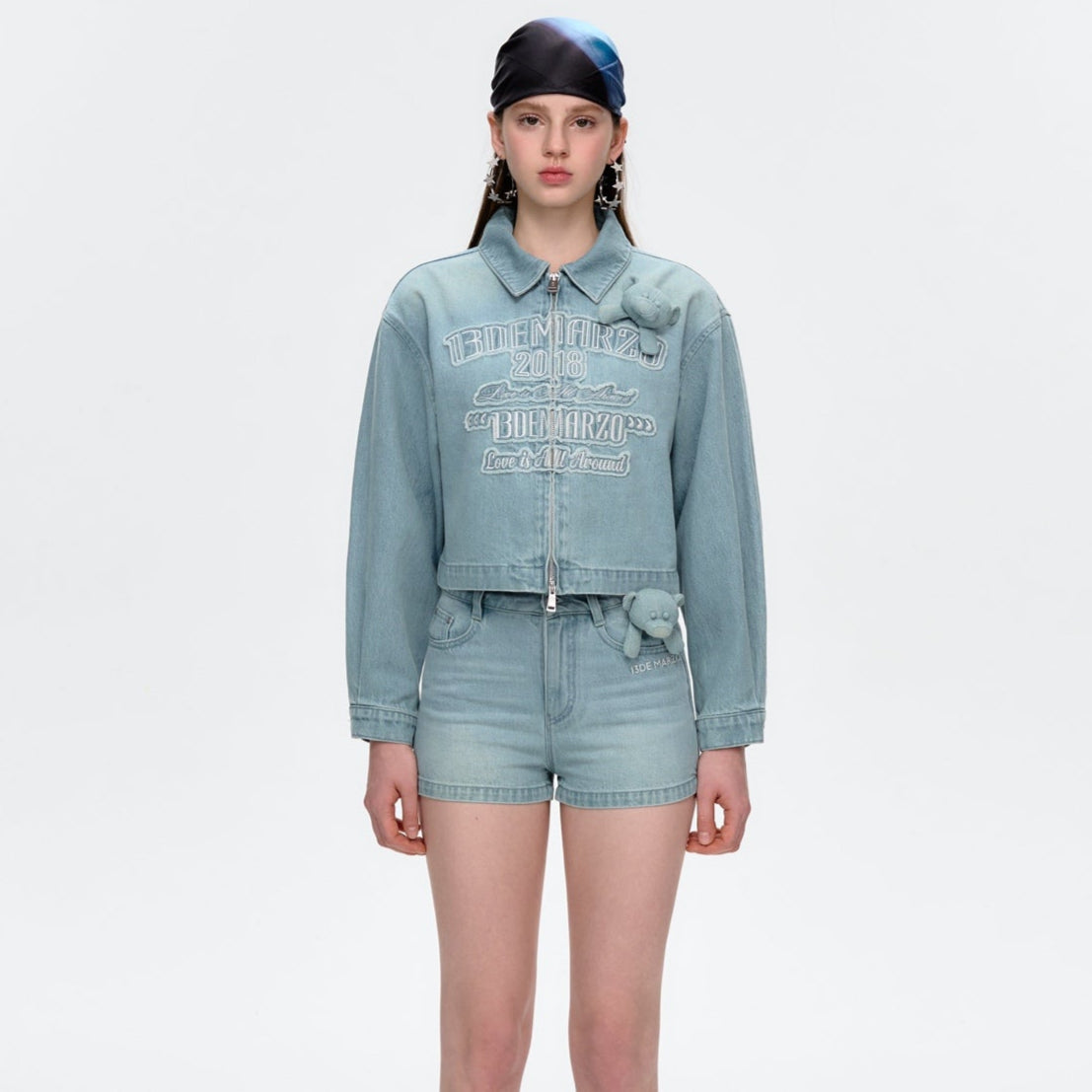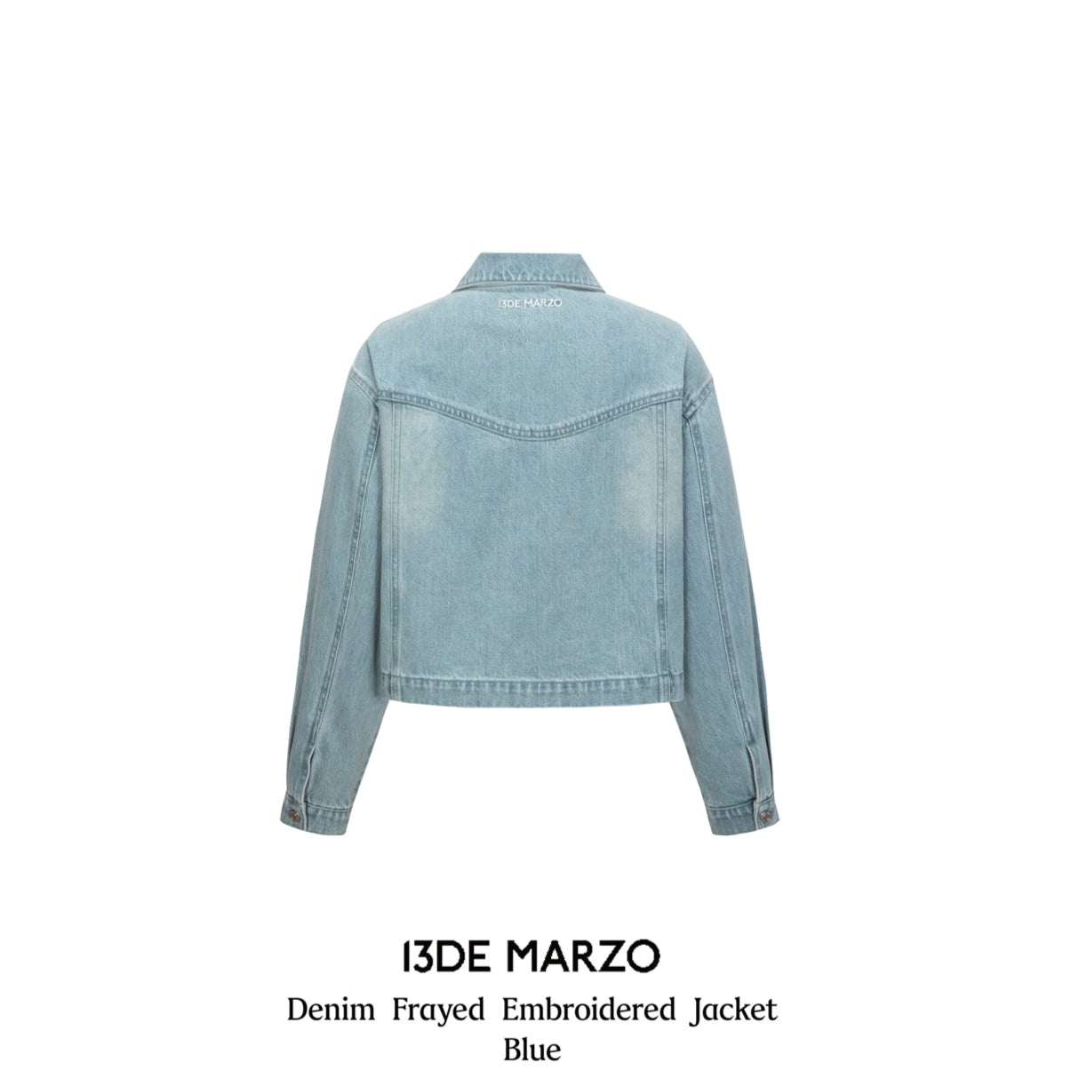 13DE MARZO | 2504 Denim Frayed Embroidered Jacket Blue