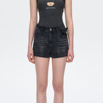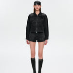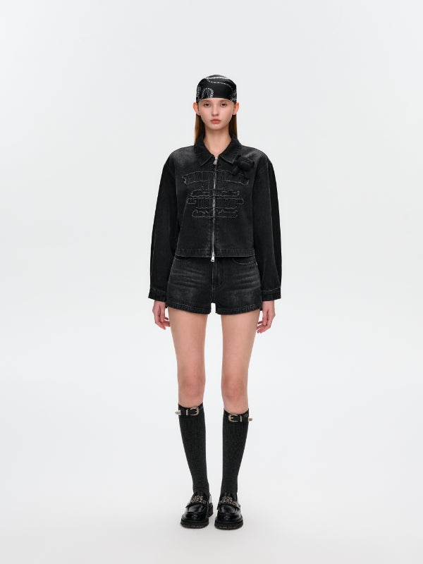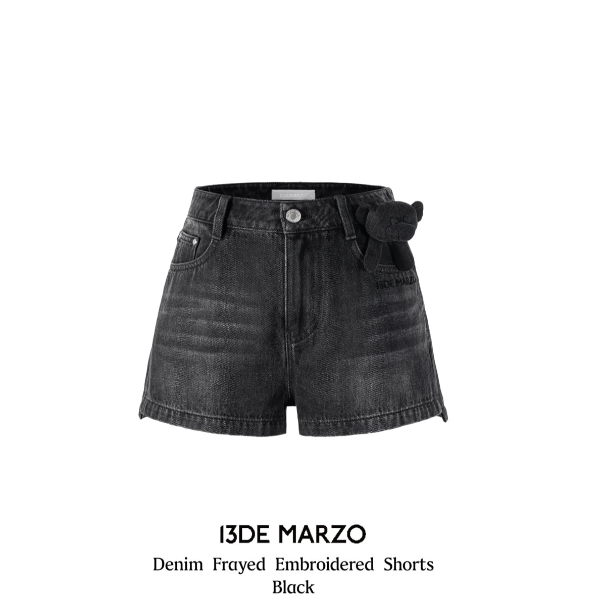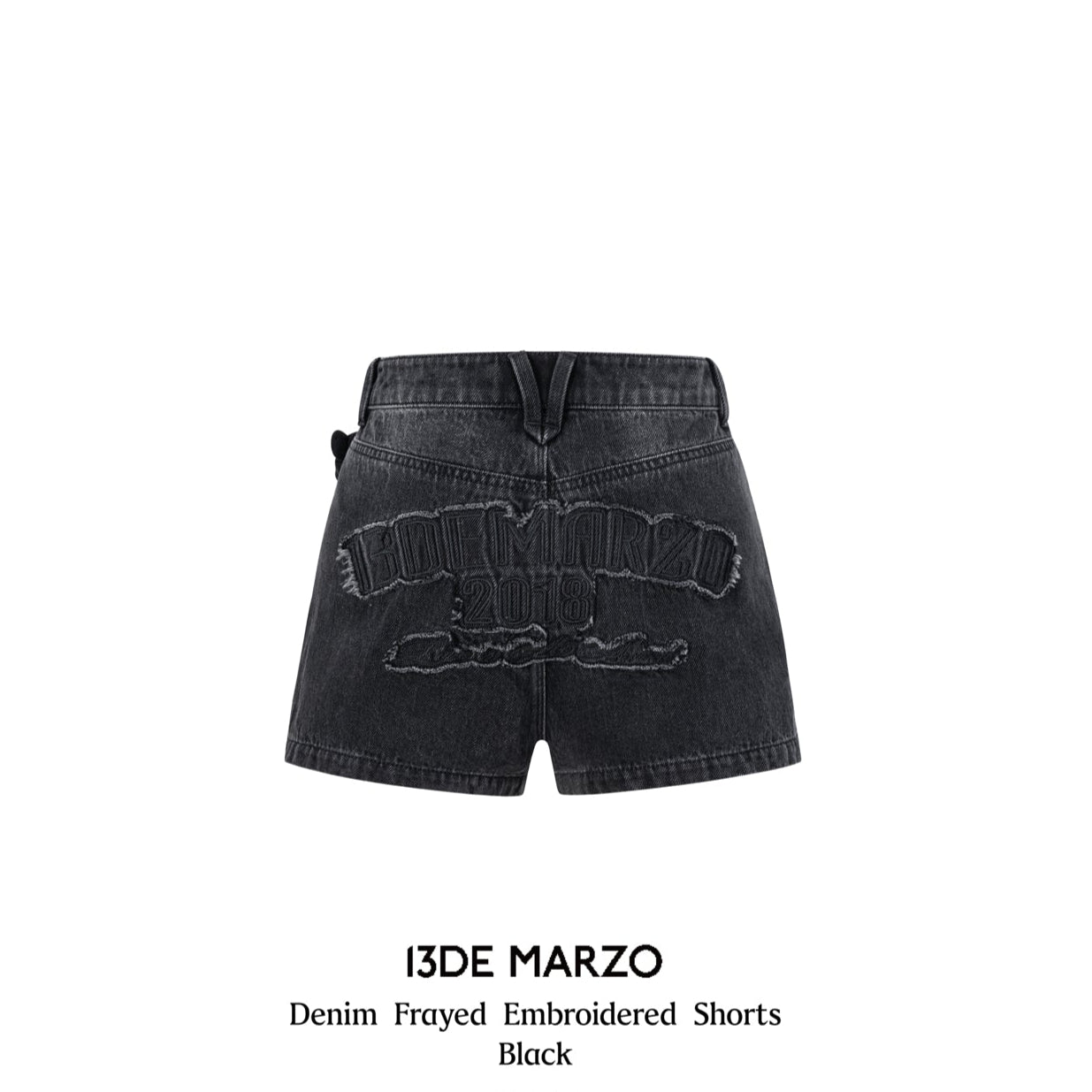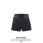 13DE MARZO | 2504 Denim Frayed Embroidered Shorts Black