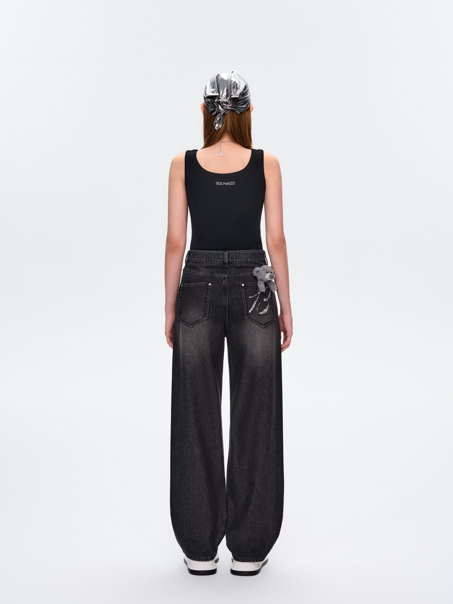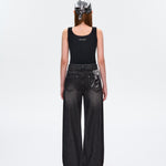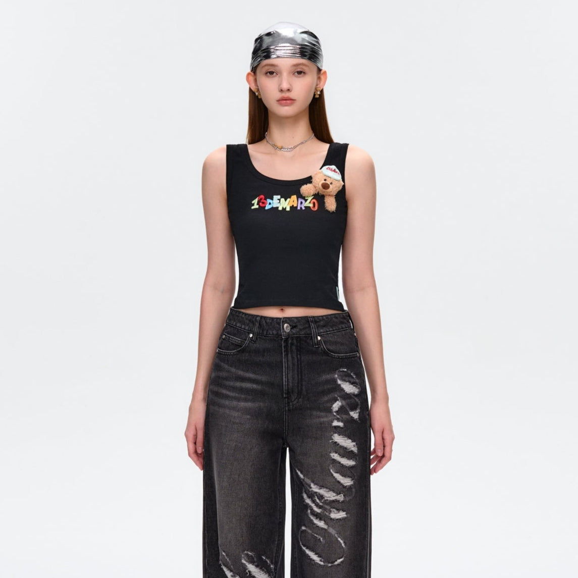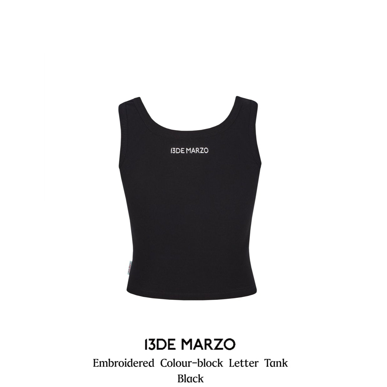 13DE MARZO | 2504 Embroidered Colour-block Letter Tank Black