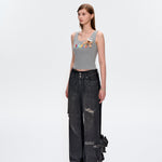 13DE MARZO | 2504 Embroidered Colour-block Letter Tank Grey