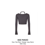13DE MARZO | 2504 Faux Two-Piece Vintage Long Sleeve Dark Grey