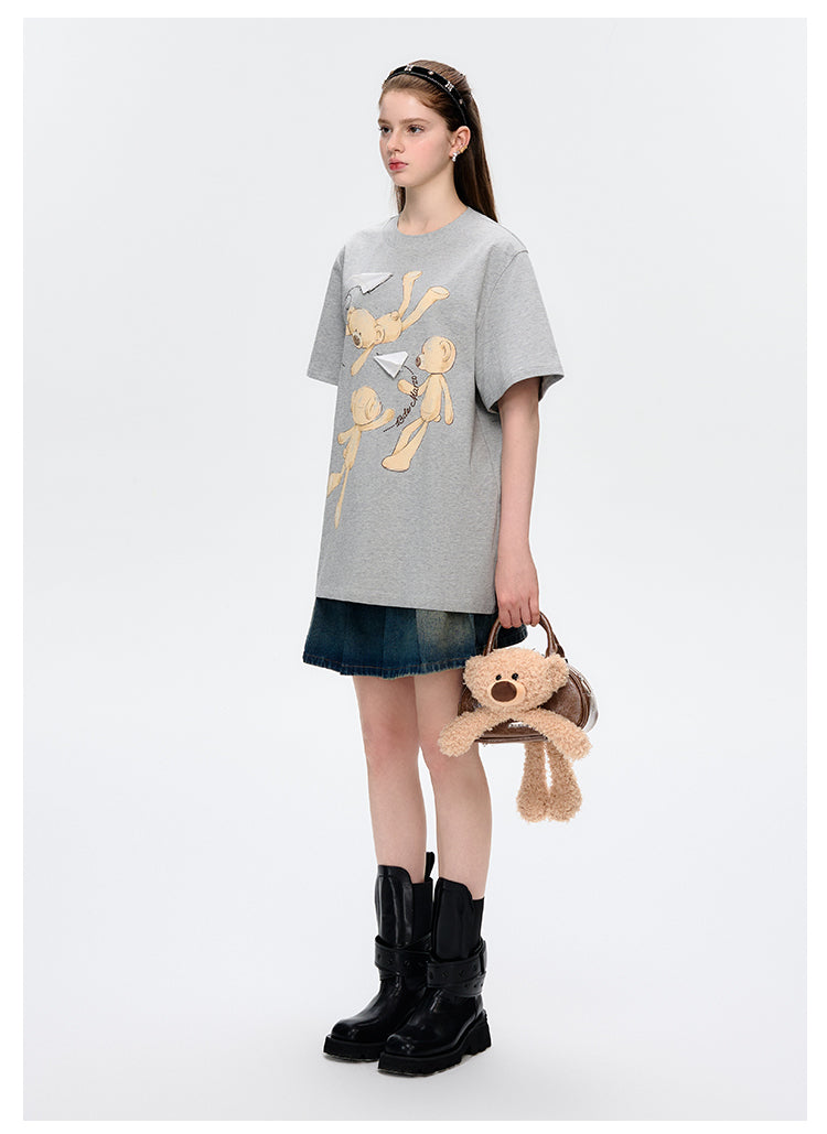 13DE MARZO | 2504 Paper Plane Bear T-Shirt Grey